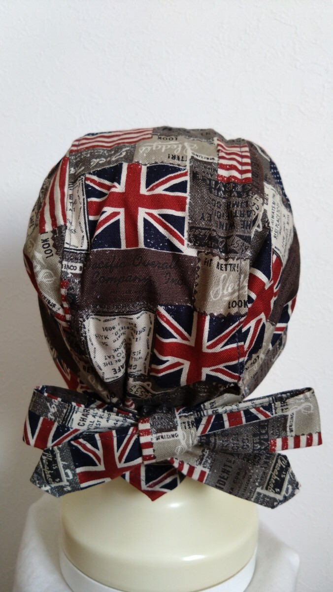 短★バンダナキャップ★ハンドメイド デニム柄 国旗 グレー