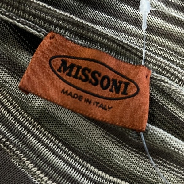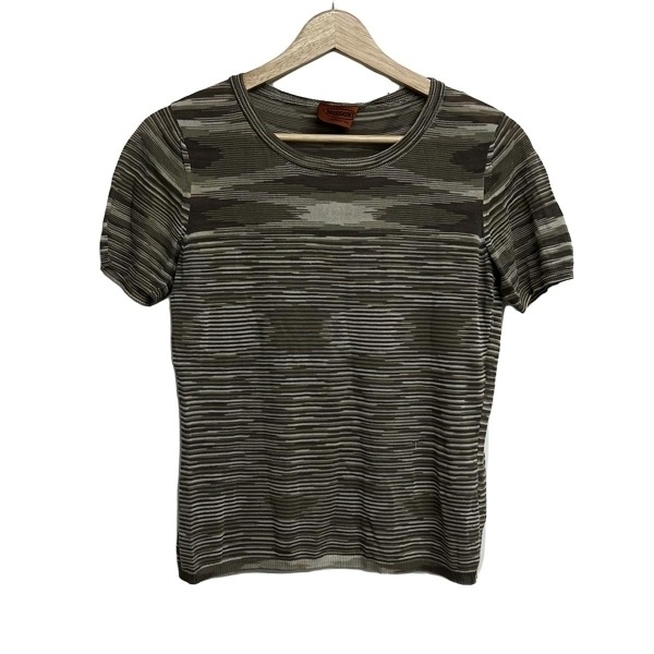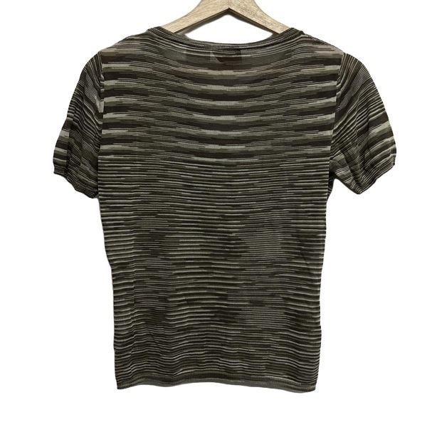 ミッソーニ MISSONI 半袖セーター/ニット サイズ40 M - ダークグレー×アイボリー×カーキ レディース クルーネック トップス