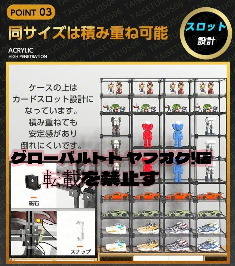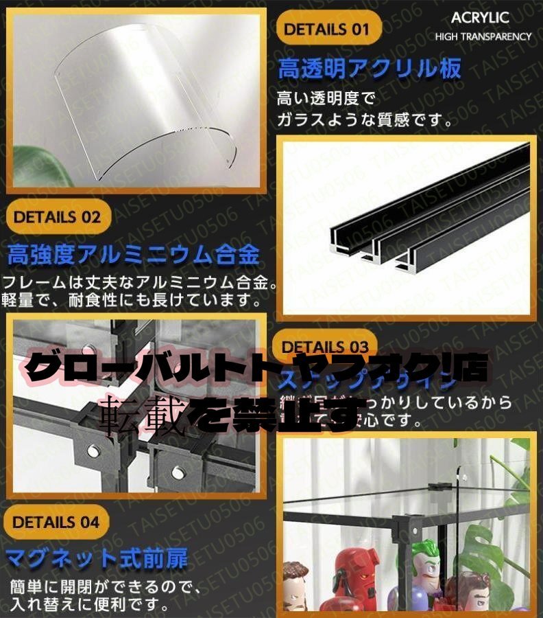 【透明度が高い】高品質アクリル材料を採用されて、透明度抜群、透過率は98%になりました。何も通さずに見るのと変わらないくらい透き通っています。お気に入るフィギュアの美しさを存分に展示されています。ガラスとマッチする透過率がありますが、ガラスよりも軽くて安全で、フィギュアをホコリから守るには最適だと思います。