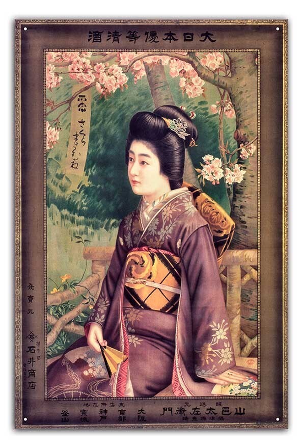 雑貨【ジャパニーズ ヴィンテージ広告】ティンサイン/メタルプレート/ブリキ看板/昭和レトロ/アンティーク風(39-Sakuramasamune Sake 1915