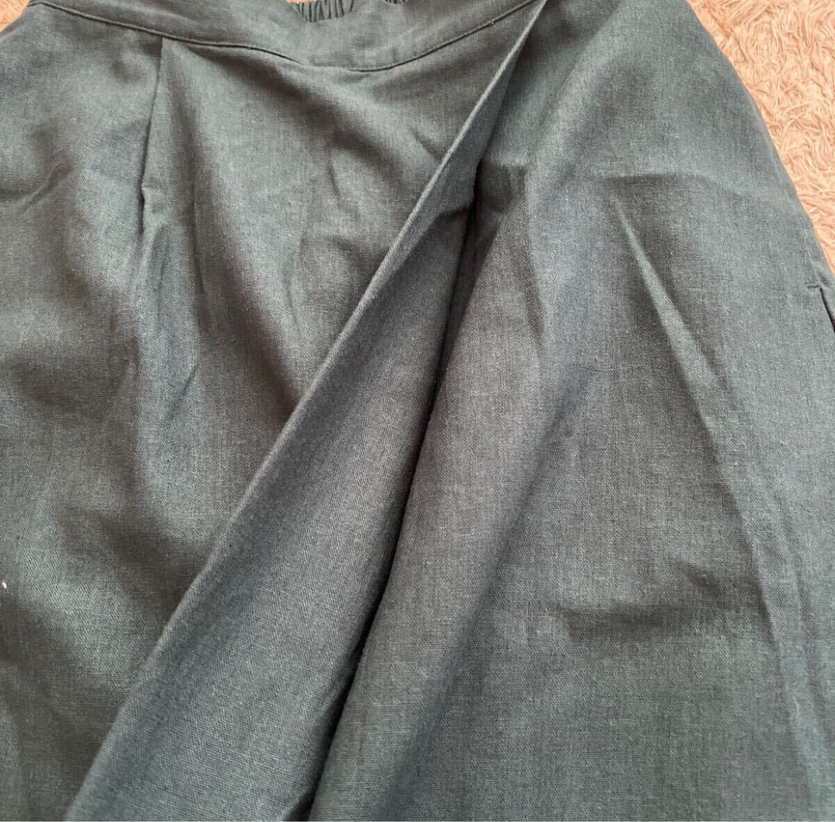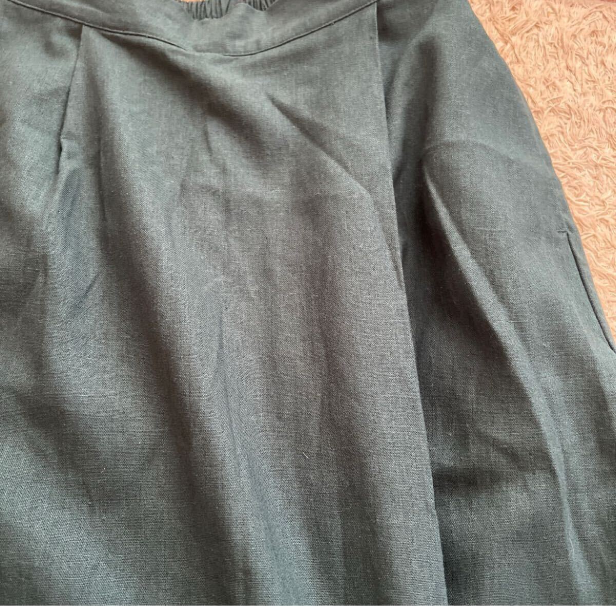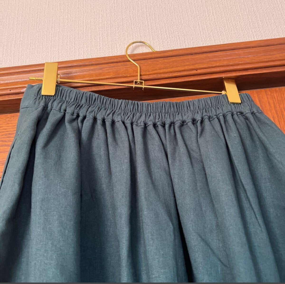 ウェストの背中側はゴムになっており、お腹まわりはスッキリ見えますが、ゆったり着ていただけます。
