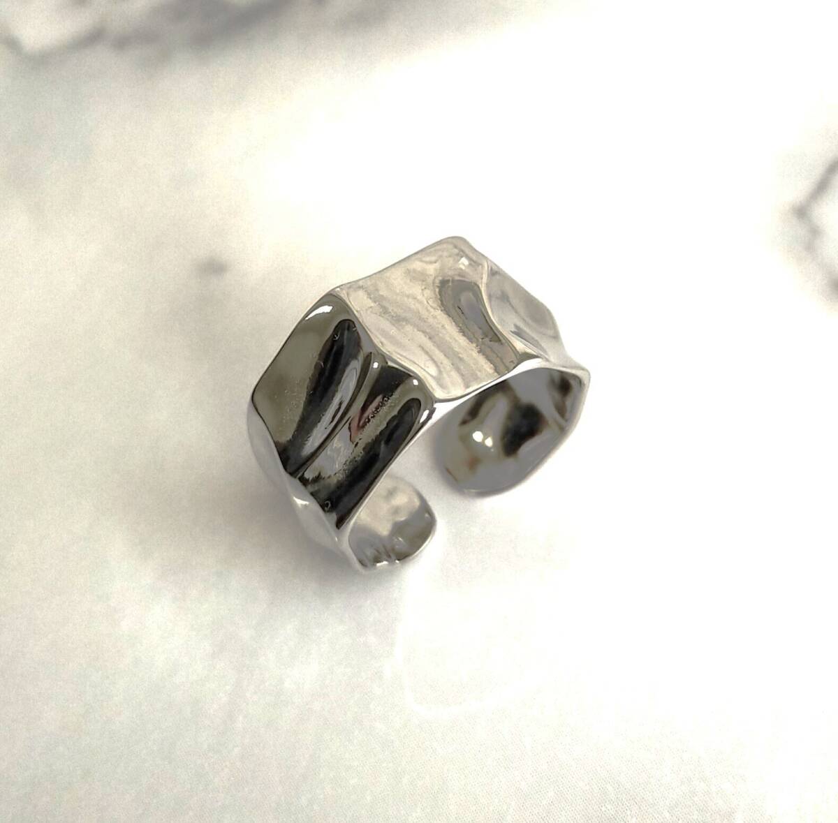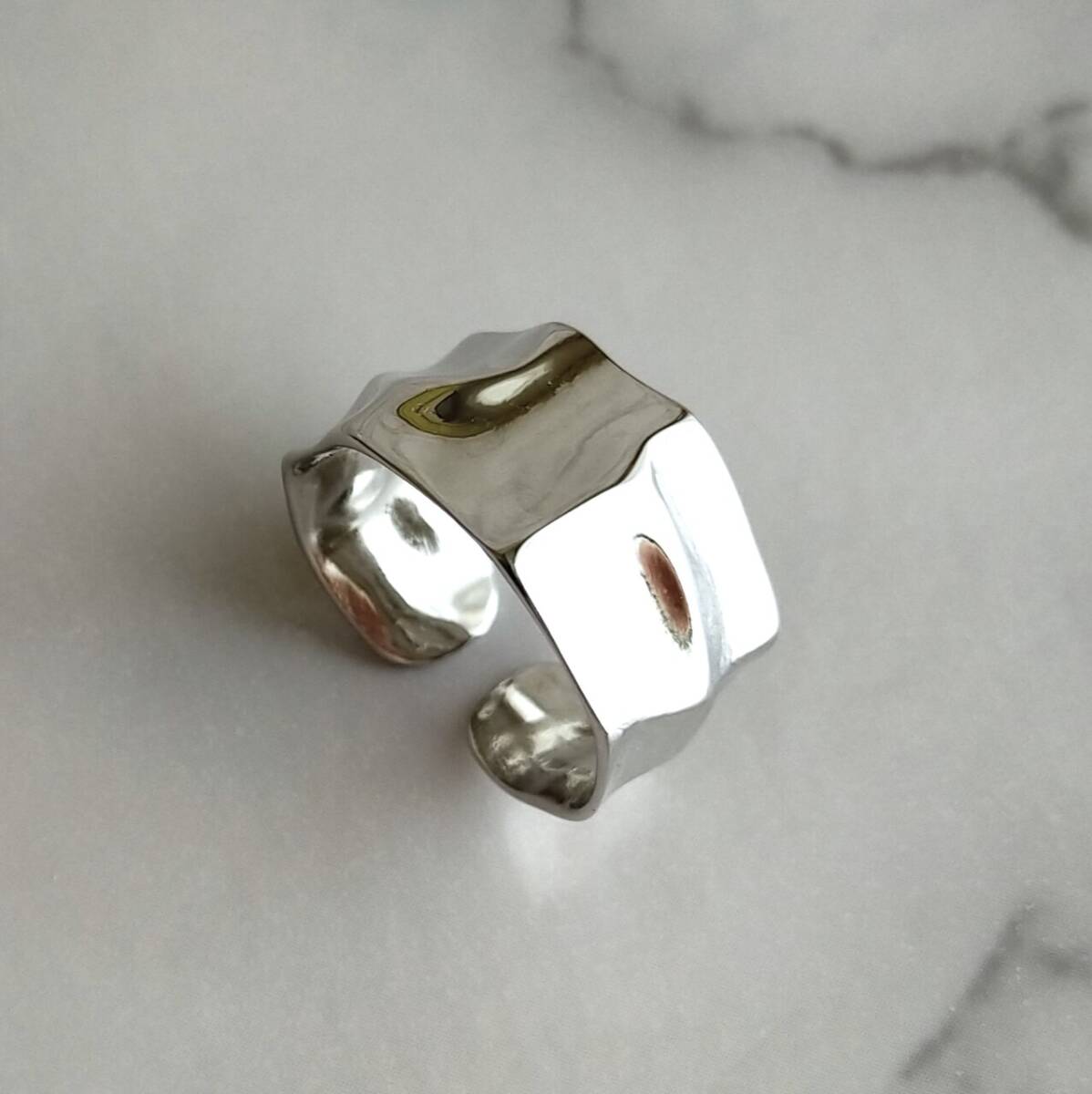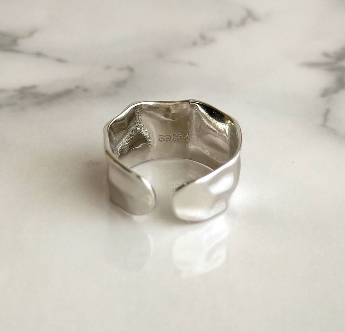 ワイド ウエーブ リング シルバー925 フリー 幅広 イヤーカフ 指輪 調節可能 オープンリング