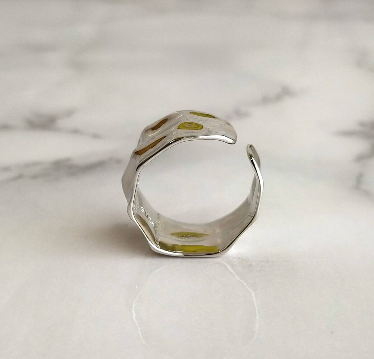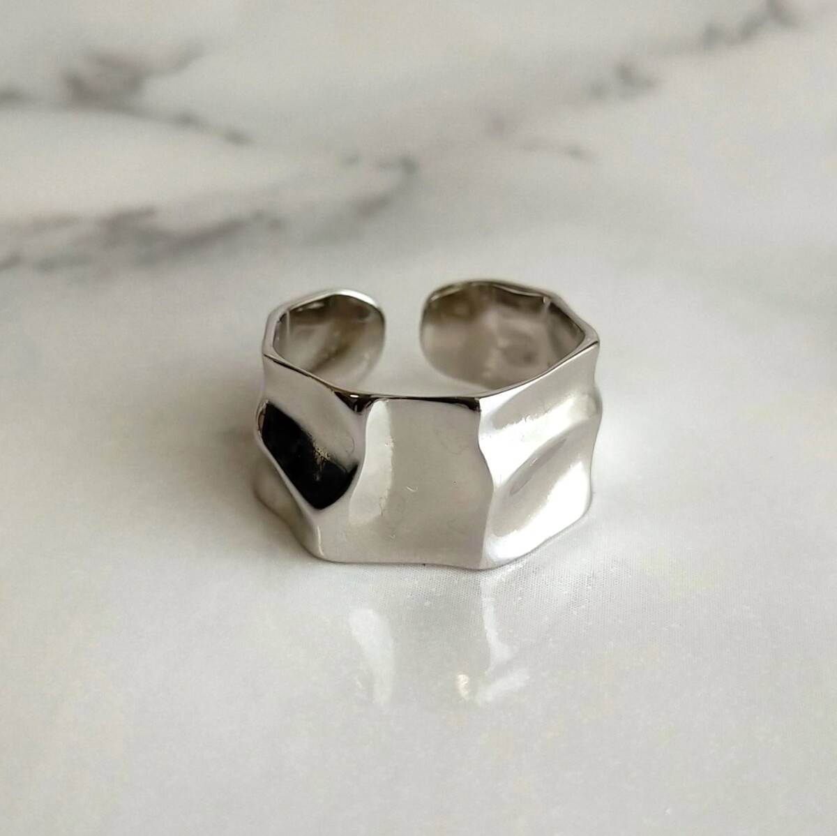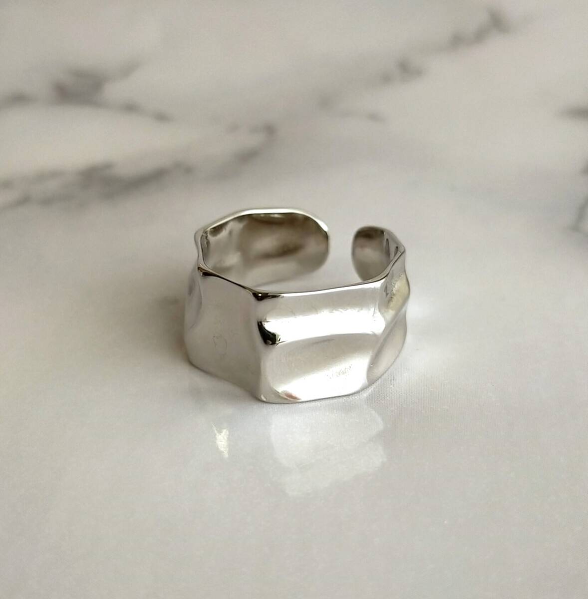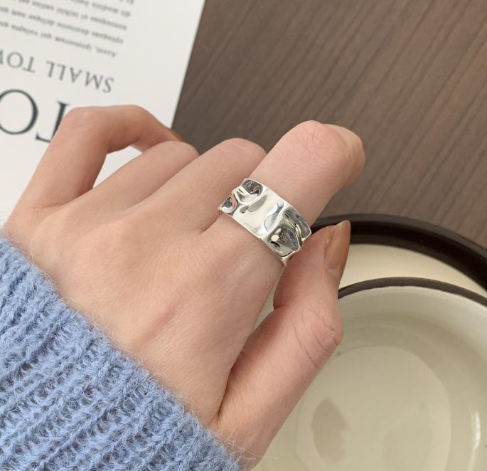 ワイド ウエーブ リング シルバー925 フリー 幅広 イヤーカフ 指輪 調節可能 オープンリング