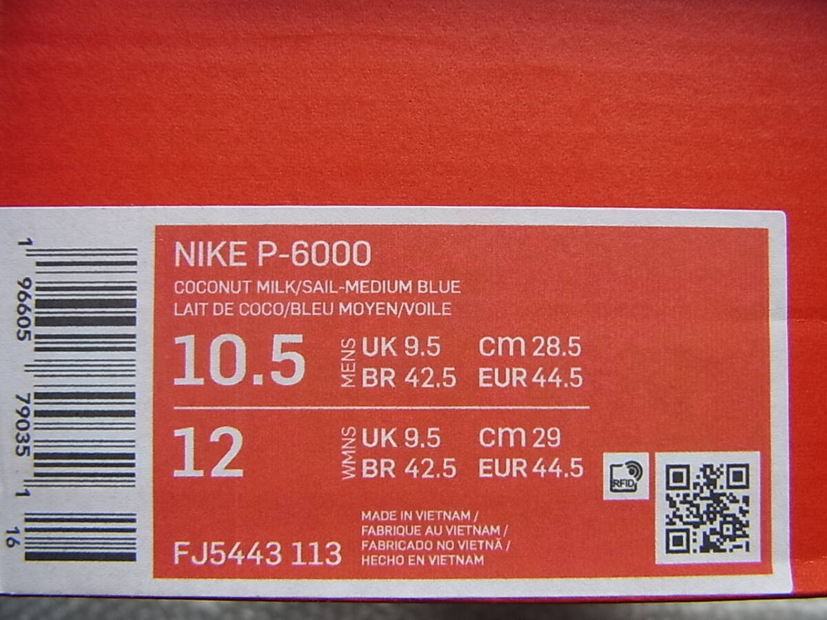 新品 NIKE P-6000 FJ5443-113 COCONUT MILK/SAIL-MEDIUM BLUE 10.5 28.5cm 28.5センチ ナイキ P6000 ココナッツミルク 黒タグ 定価 14300円
