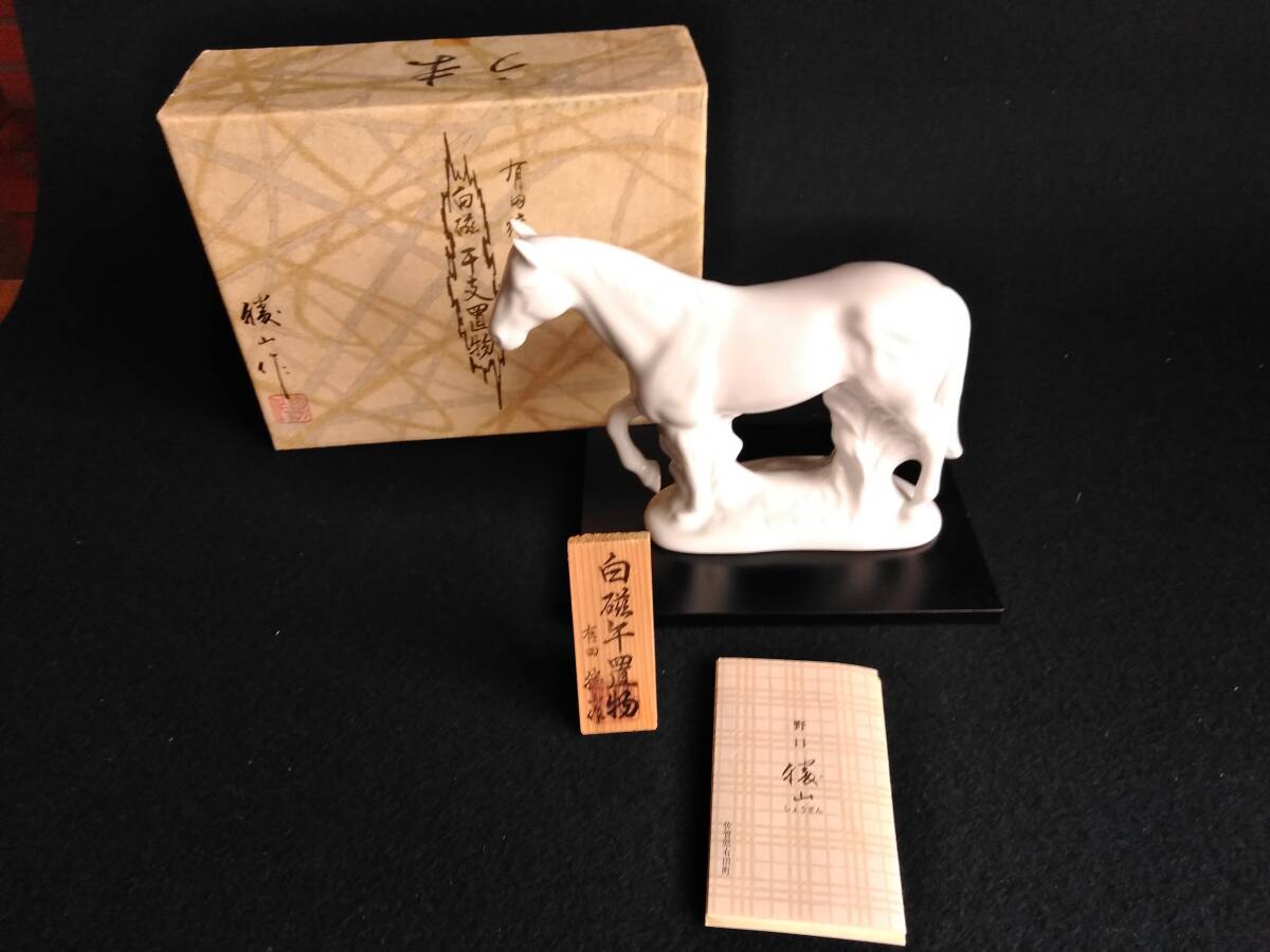 有田焼 野口勝山作 白磁 干支 午 馬 うま 23cmx9cm x18cm スタンド/台座/栞付き 箱入り