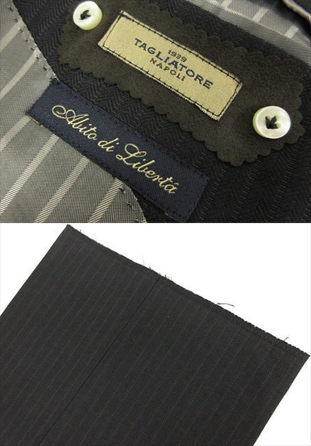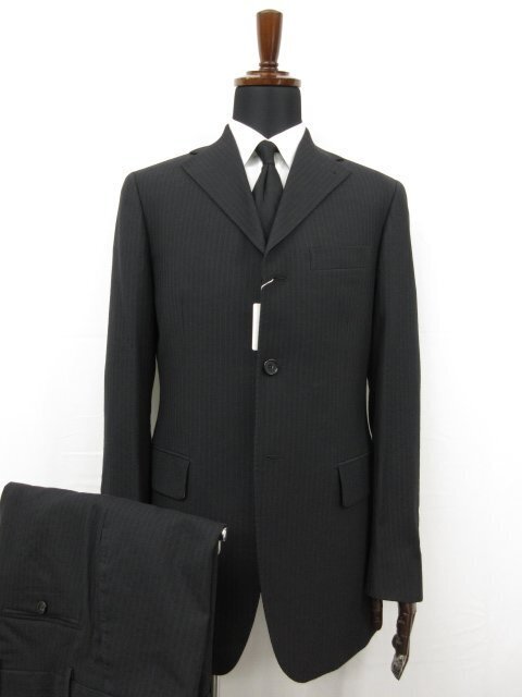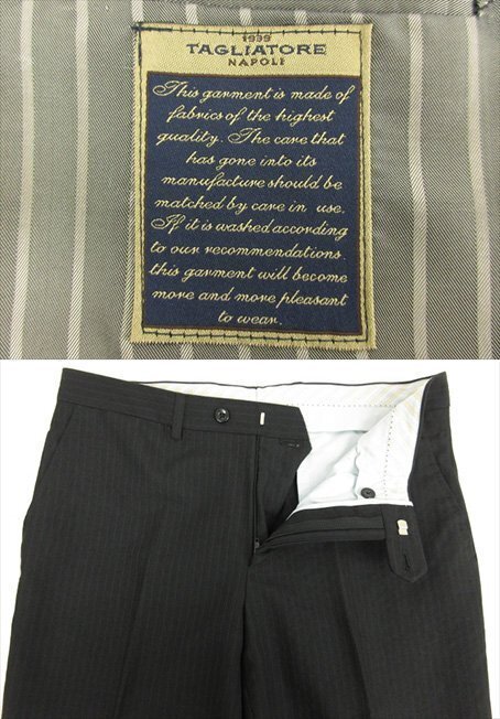 未使用 【TAGLIATORE NAPOLI 1939 タリアトーレ】 シングル3ボタン スーツ (メンズ) 48 ブラック ストライプ織 伊製 TA800/18 ◯27SLJ0590