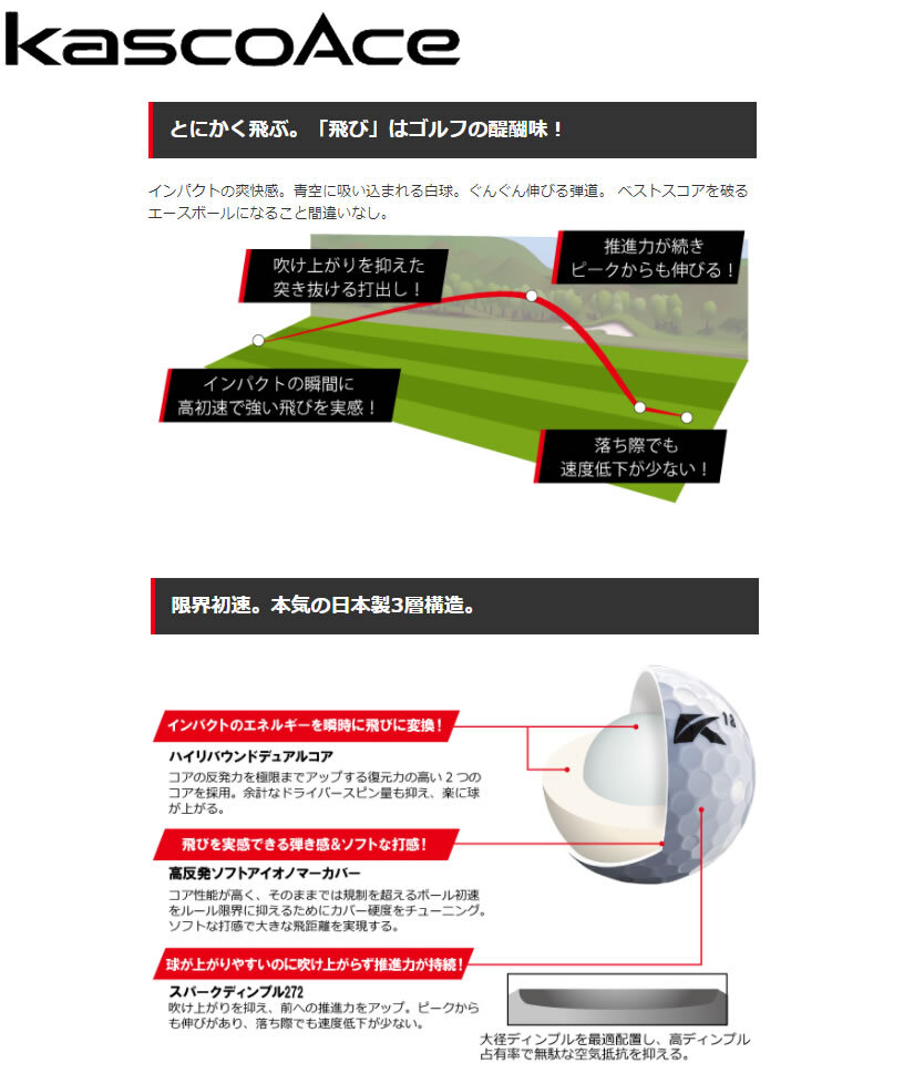 キャスコ キャスコエース kascoAce ゴルフボール ホワイト 12球入り ホワイト 【IR】