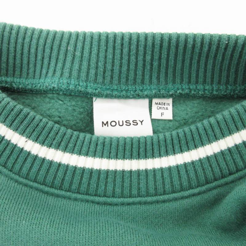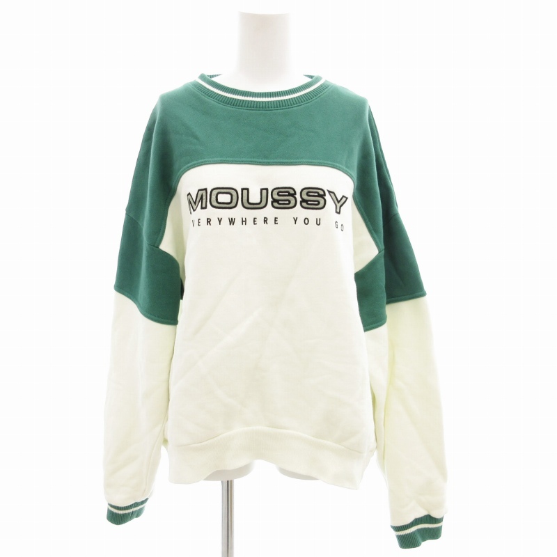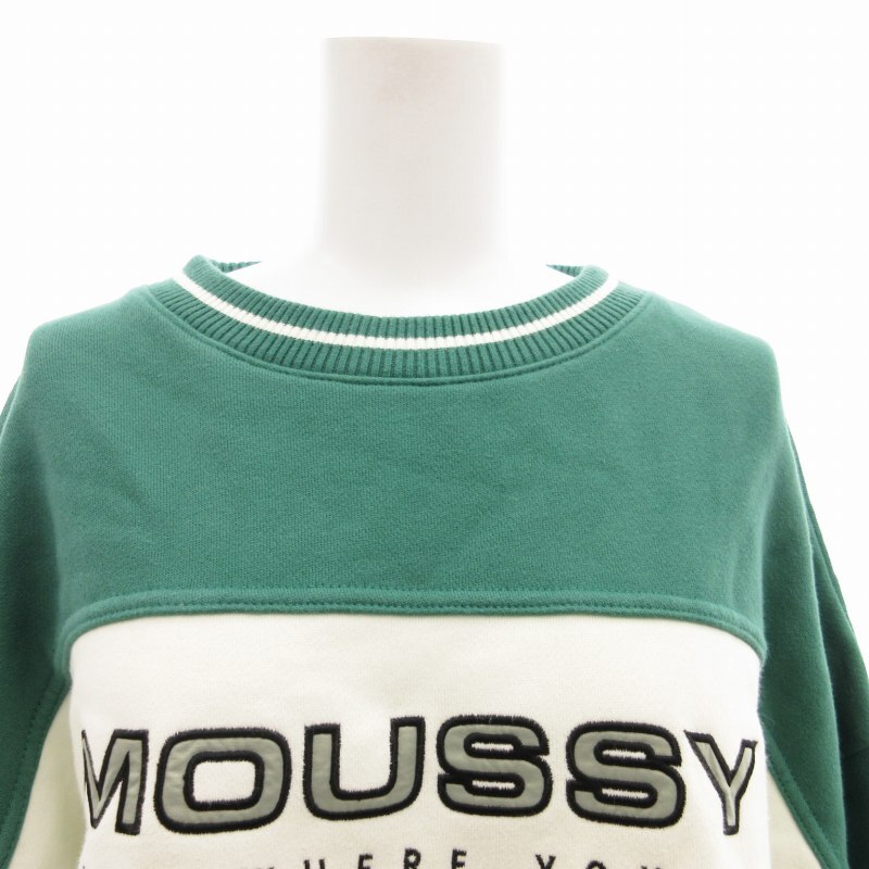 マウジー MOUSSY ATHLETIC MOUSSY PATCH プルオーバー トレーナー スウェット 裏起毛 F 緑 グリーン 白 ホワイト 010FA790-5560