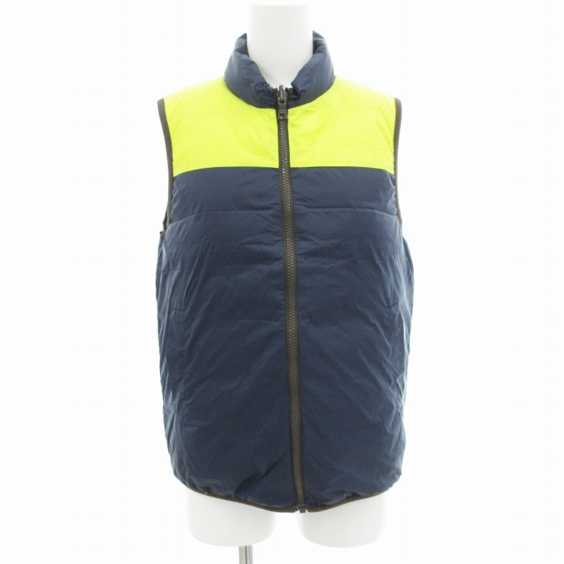 シップス SHIPS リバーシブル ダウンベスト ジャケット ジップアップ 迷彩柄 ナイロン 38 カーキ 紺 ネイビー /GV レディース