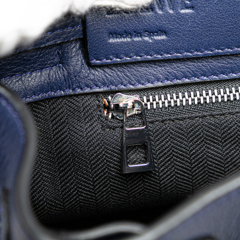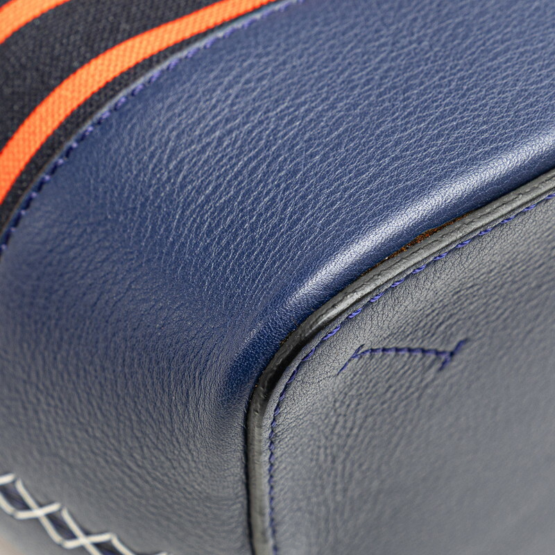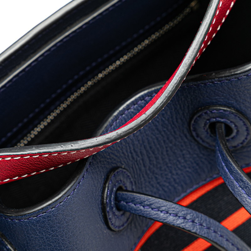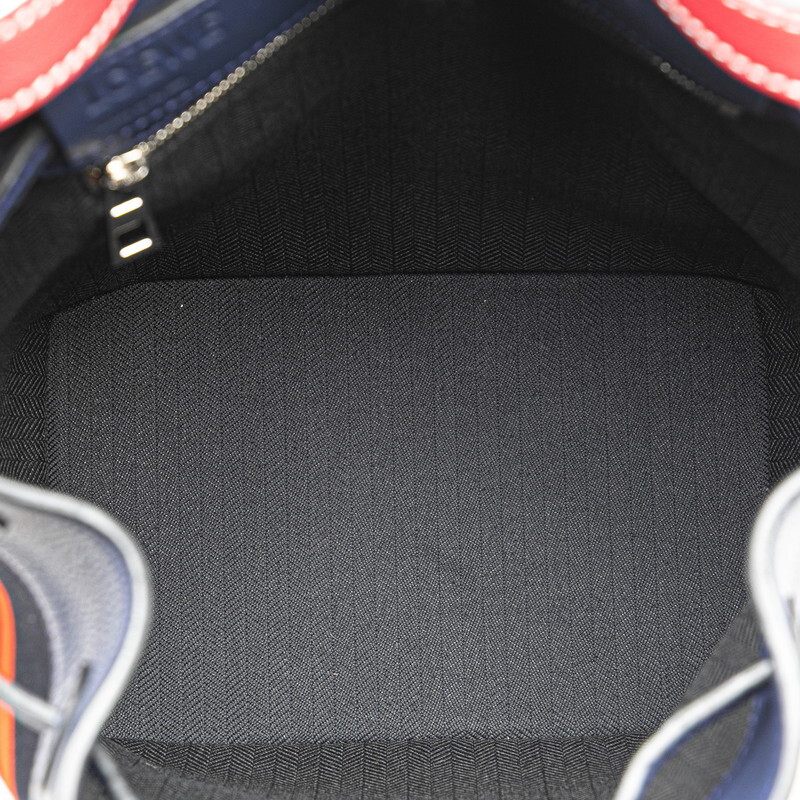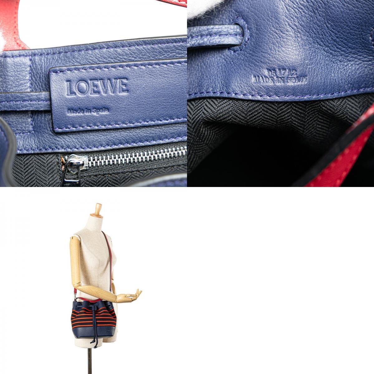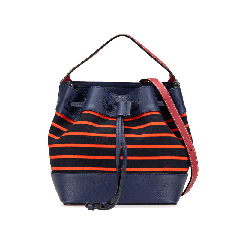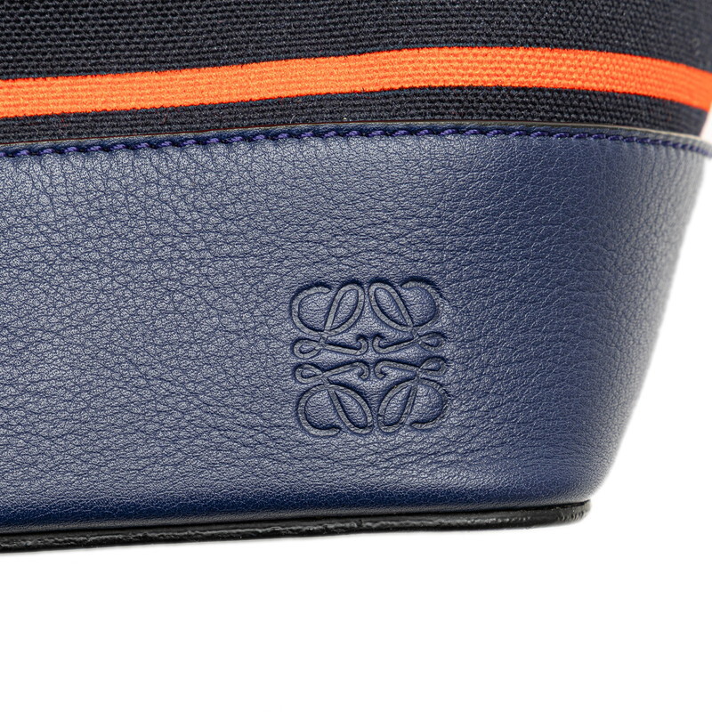 ロエベ ミッドナイト 巾着 ストライプ ハンドバッグ ショルダーバッグ 2WAY ネイビー オレンジ レザー キャンバス LOEWE 【中古】