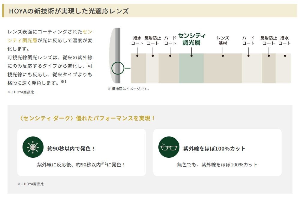※以下調光レンズの特性や注意事項は必ずご確認ください。