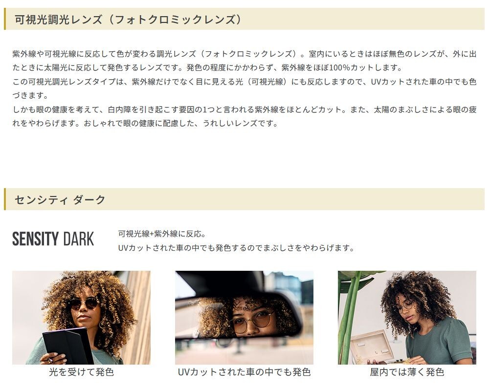 ※レンズはHOYAセンシティダークのプラスチックレンズで、すべてUVカット、撥水コート付き。
