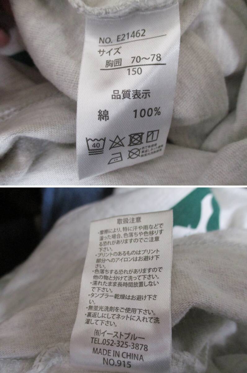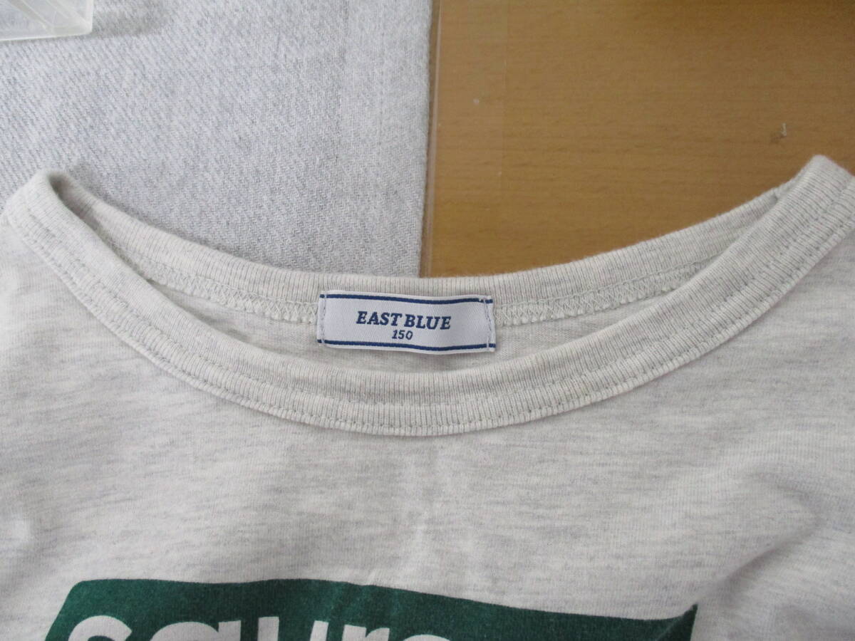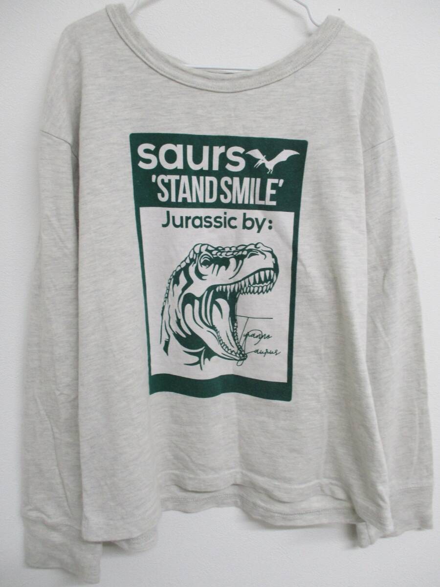 ★1313【送料無料】EAST BLUE イーストブルー 長袖Tシャツ キッズ 150 杢グレー 綿100% ロンT 恐竜 袖リブ 部屋着 普段着 かっこいい 春秋