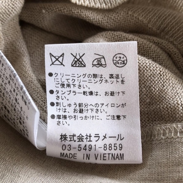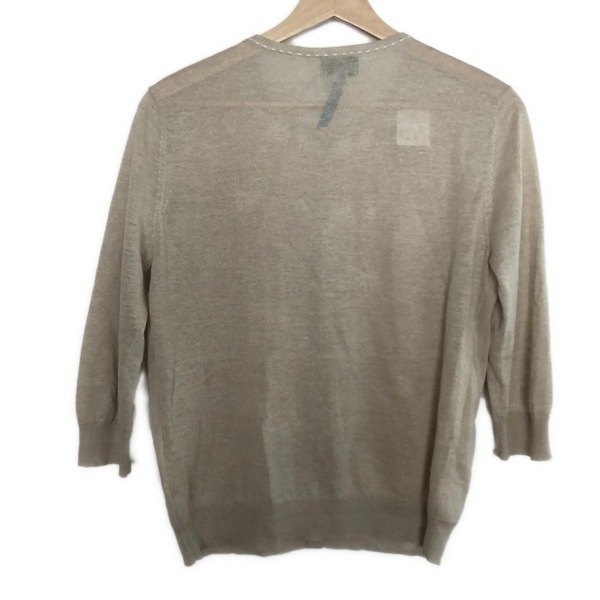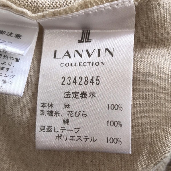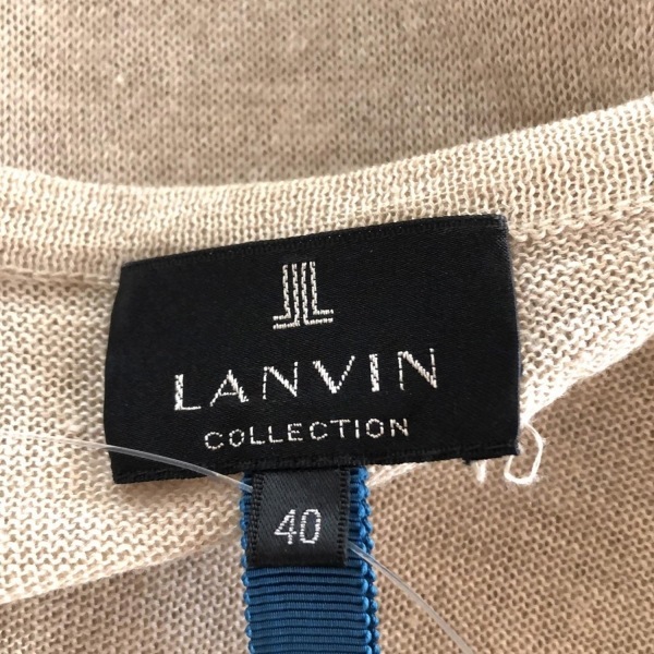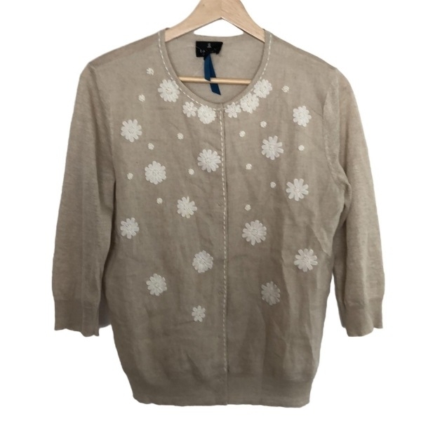 ランバンコレクション LANVIN COLLECTION カーディガン サイズ40 M - ベージュ×白 レディース 七分袖/麻/刺繍/フラワー(花) トップス