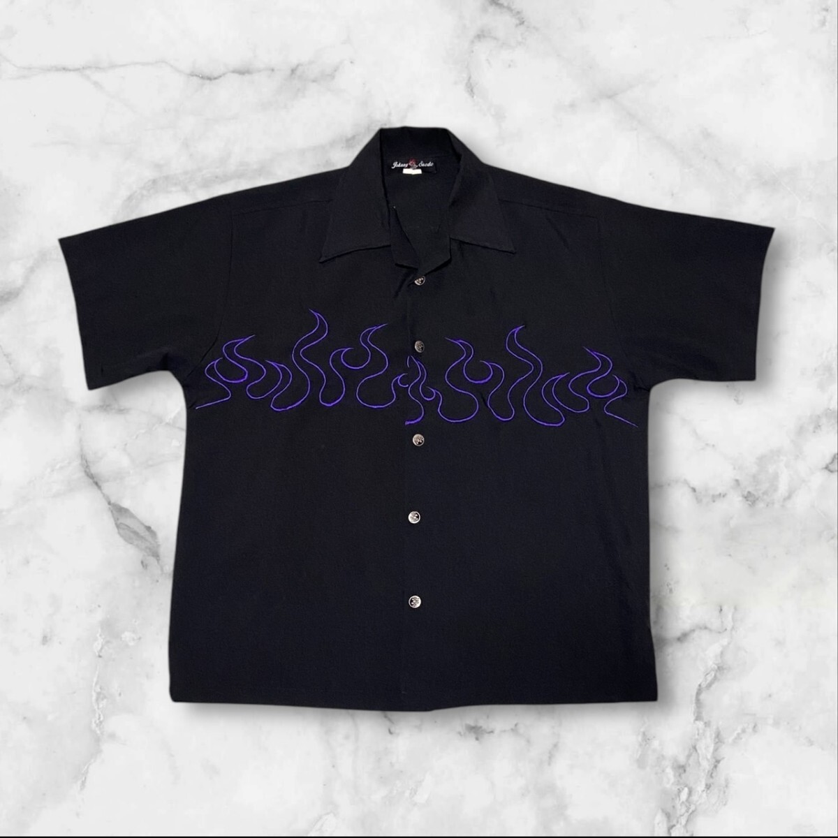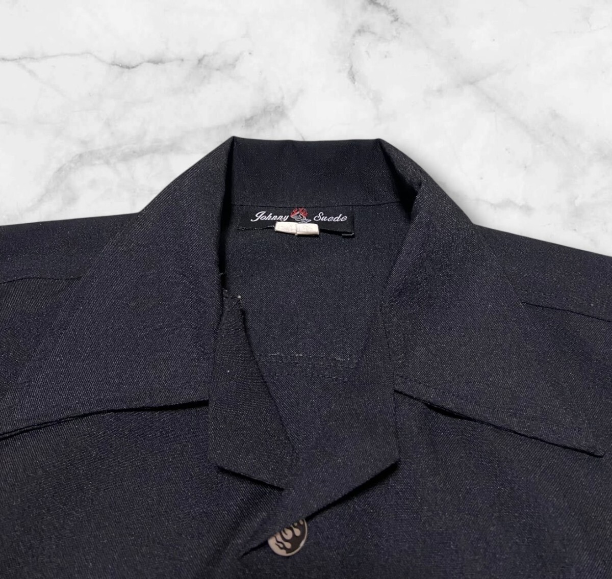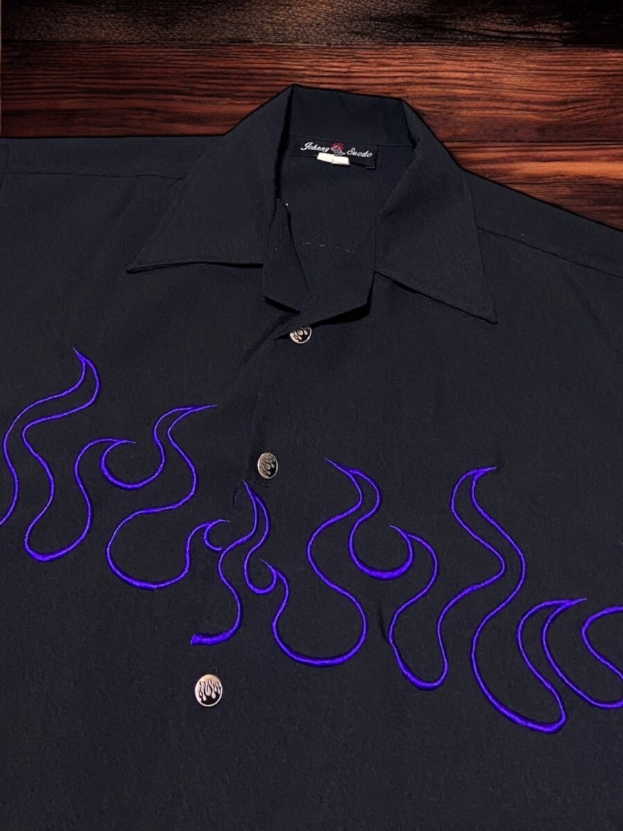 BRAND NAME:Johnny Suede ジョニースエード オープンカラー 半袖 ロカビリー シャツ★Mサイズ USA製★