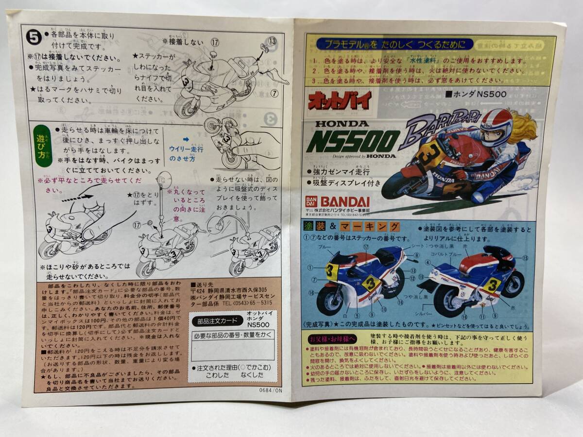 ホンダ NS500 吸盤ディスプレイ付属 ゼンマイ走行 デフォルメ オットバイ バンダイ 開封済中古未組立プラモデル レア 絶版 | |