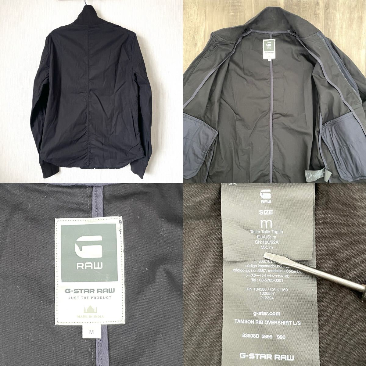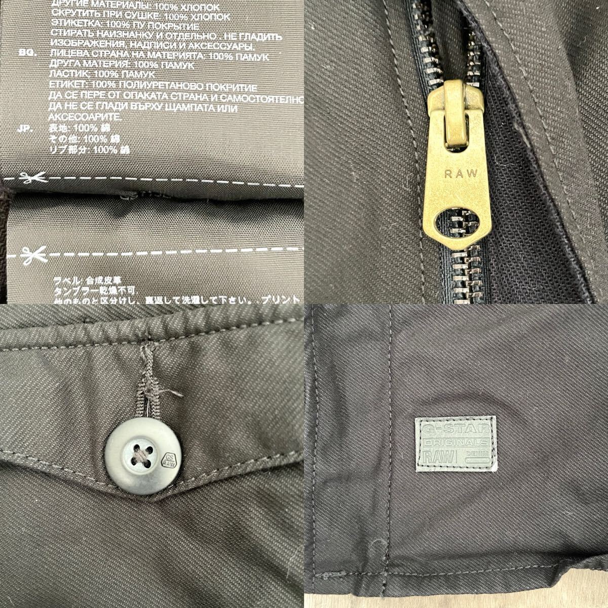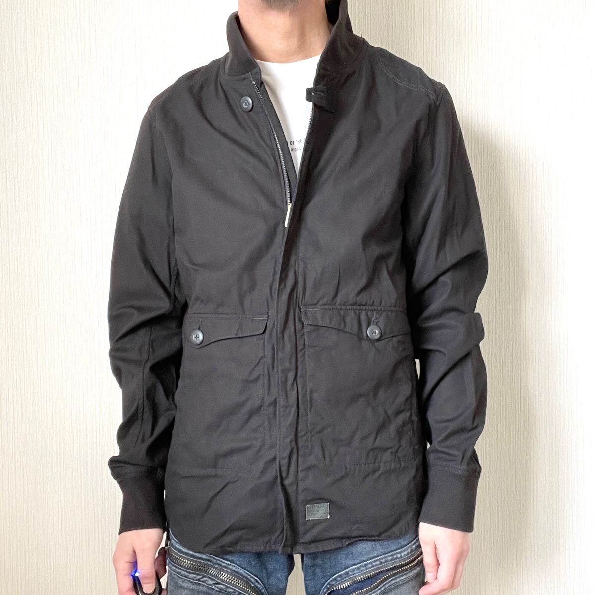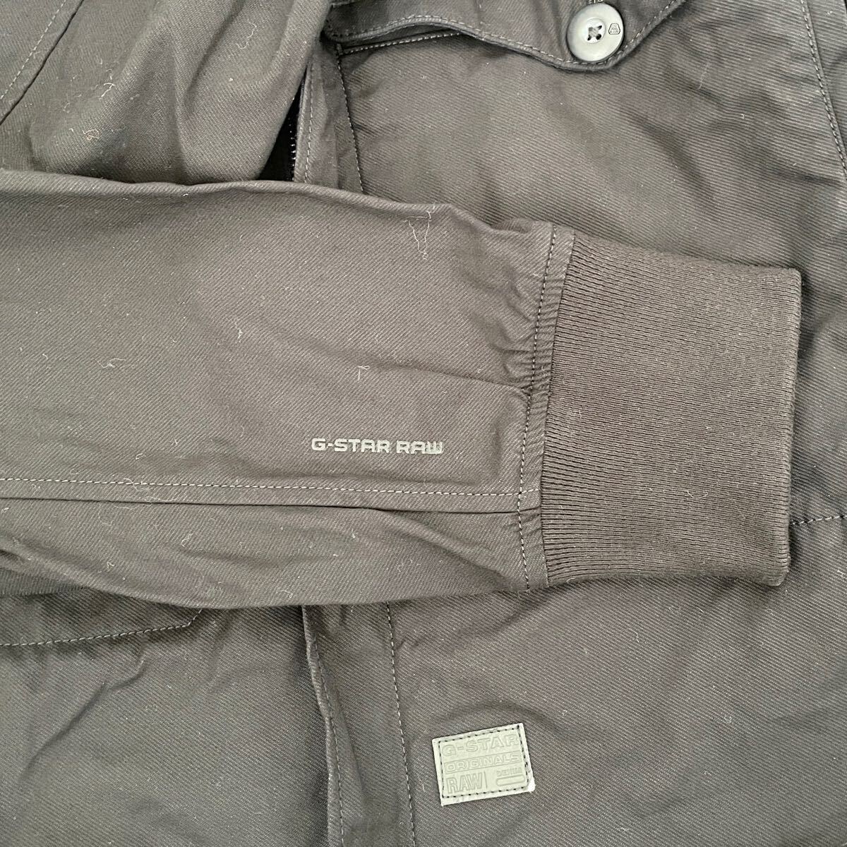 ジースターロゥらしいボタンのブランド刻印や、革タグ、袖口のプリントなど、細かなディテールまでこだわったアウターです。