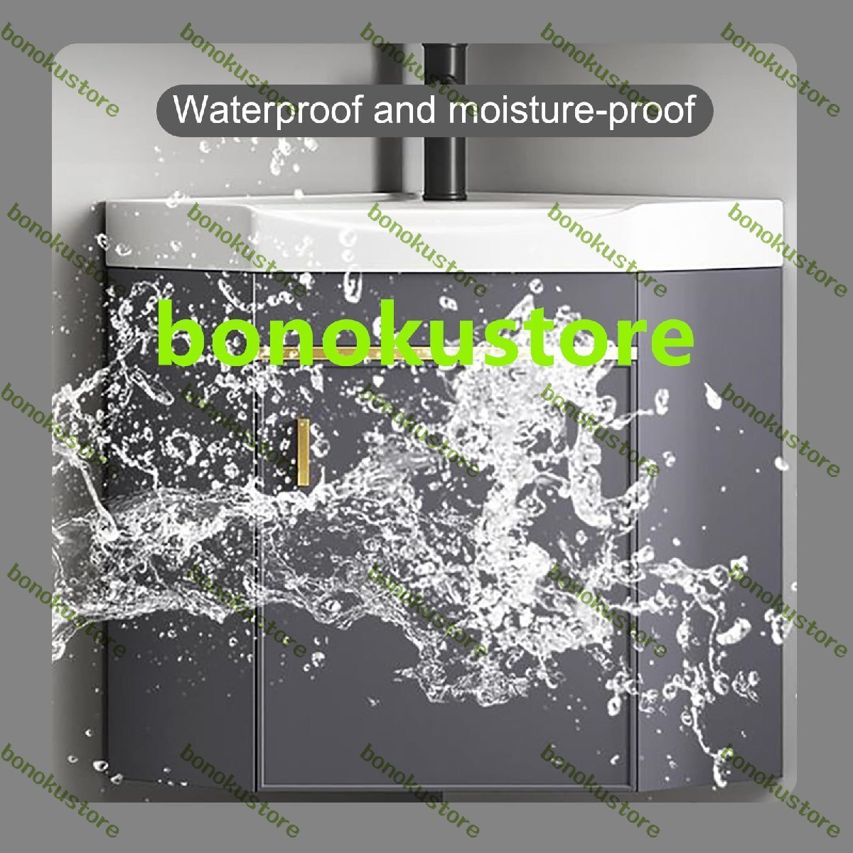 洗面化粧台、シンクと LED ミラーキャビネット付き、コーナーバスルームキャビネット セラミックシンク付き、収納コンテナ付きバルコニー洗面台、小さなバスルームの洗面化粧台(38*38cm/15*15in)