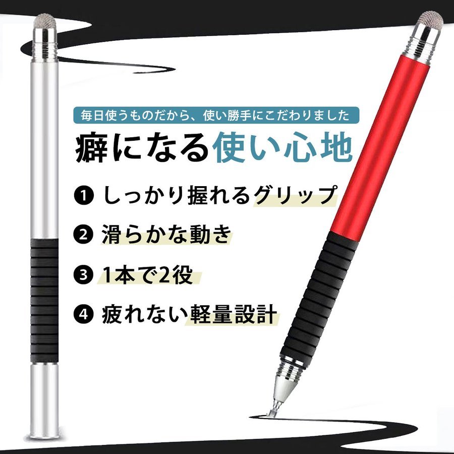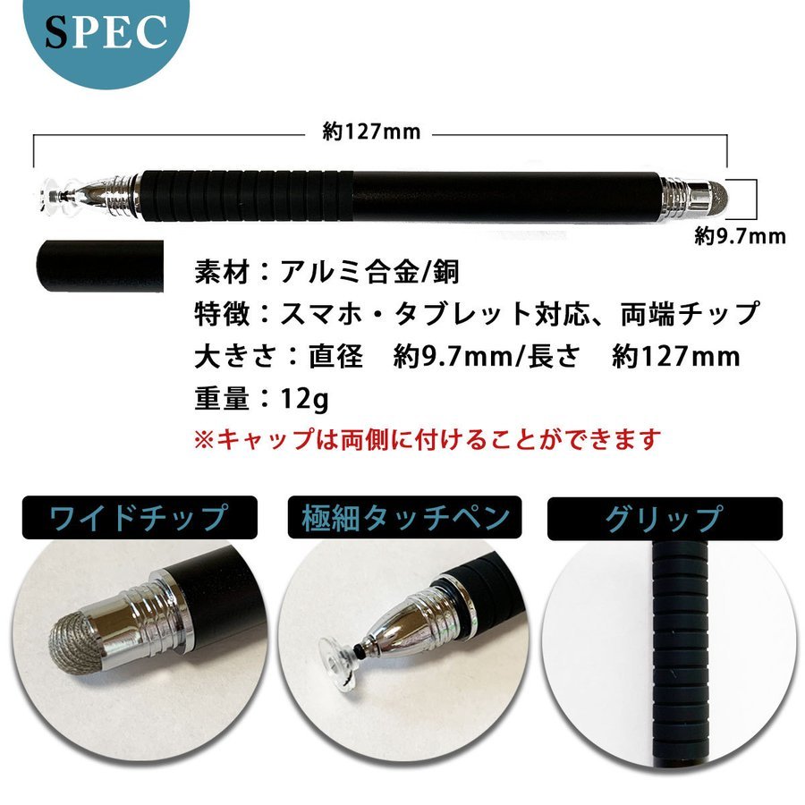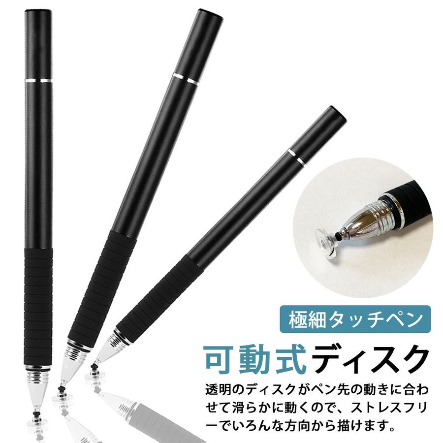 【2in1 タッチペン ブラック 1本】書きやすい 快適 細い 極細 スマホ タブレット iPad iPhone Android アンドロイド 対応 スタイラスペン