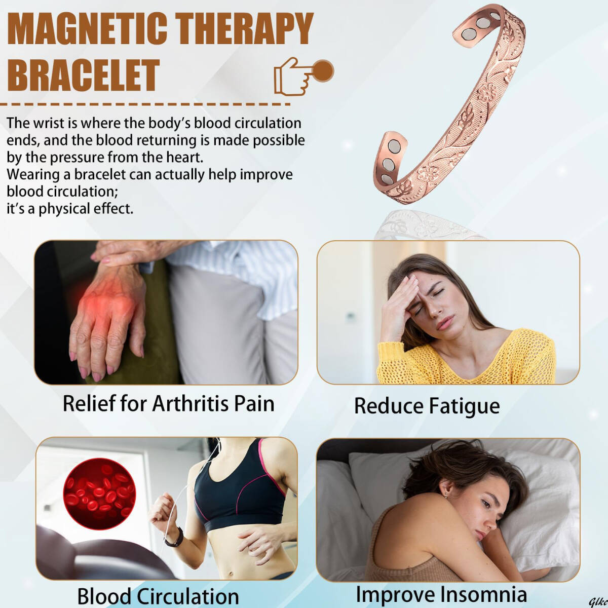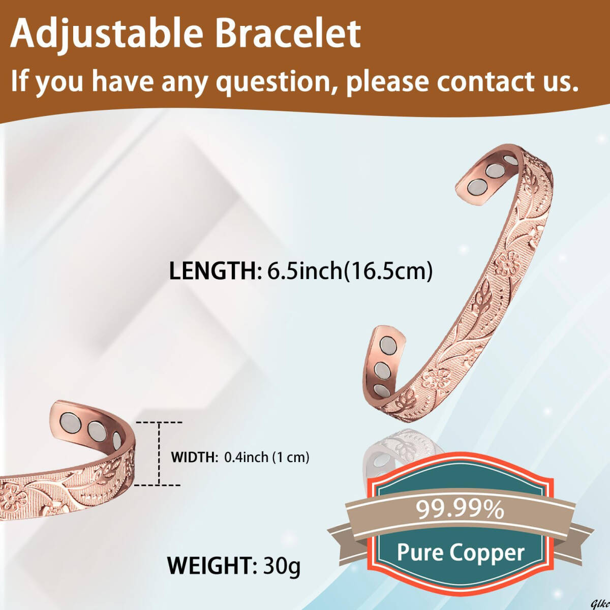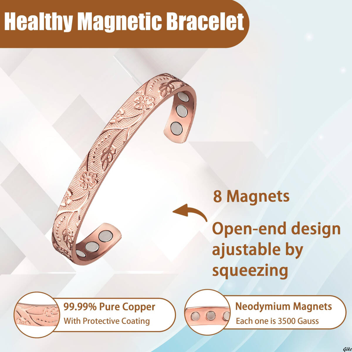 99.9%の純銅を使用した高品質な磁気ブレスレット。