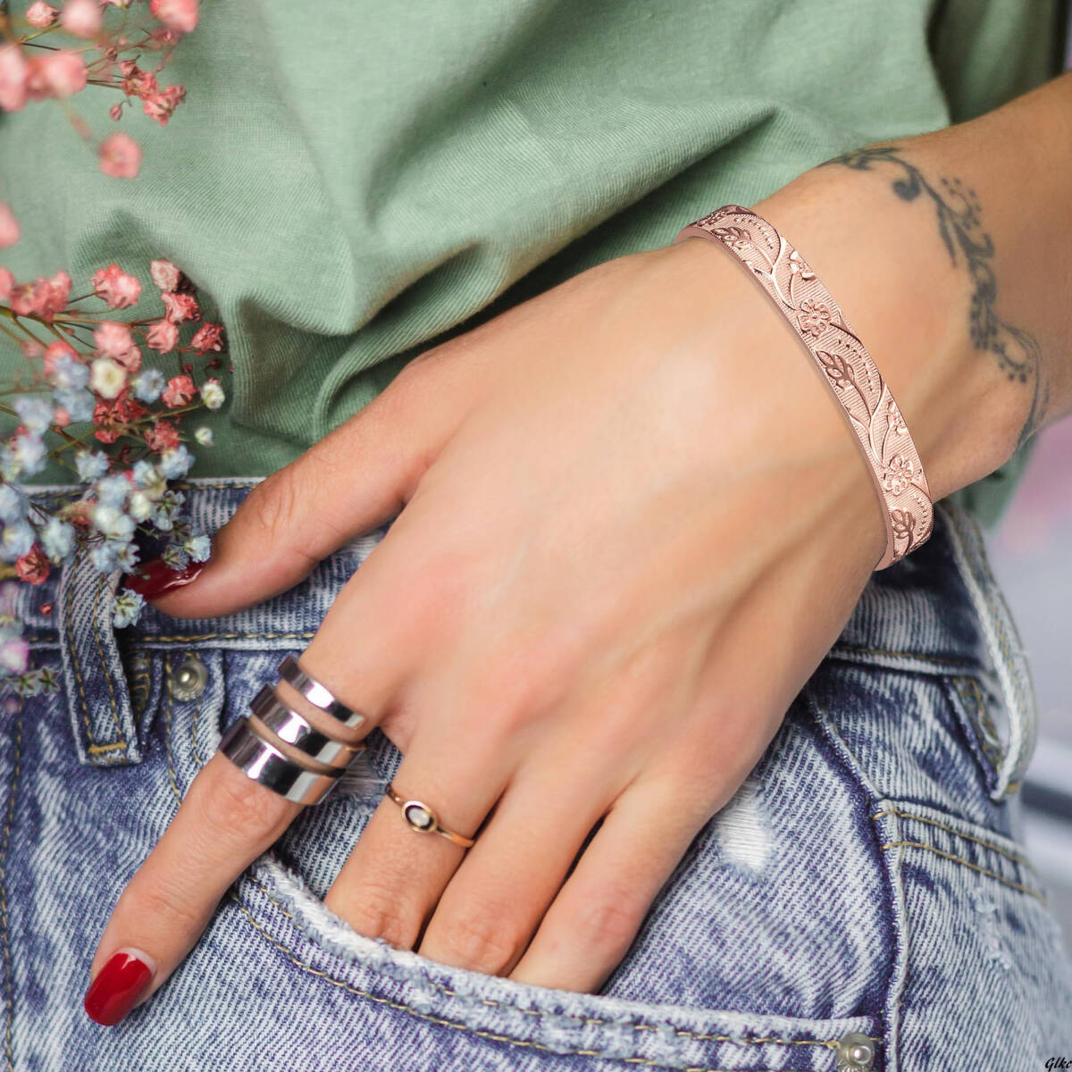 【シンプルで繊細なデザイン。どんなスタイルにも馴染むエレガントな外観】磁気ブレスレット サイズ調整可能 女性用 純銅製 ギフト