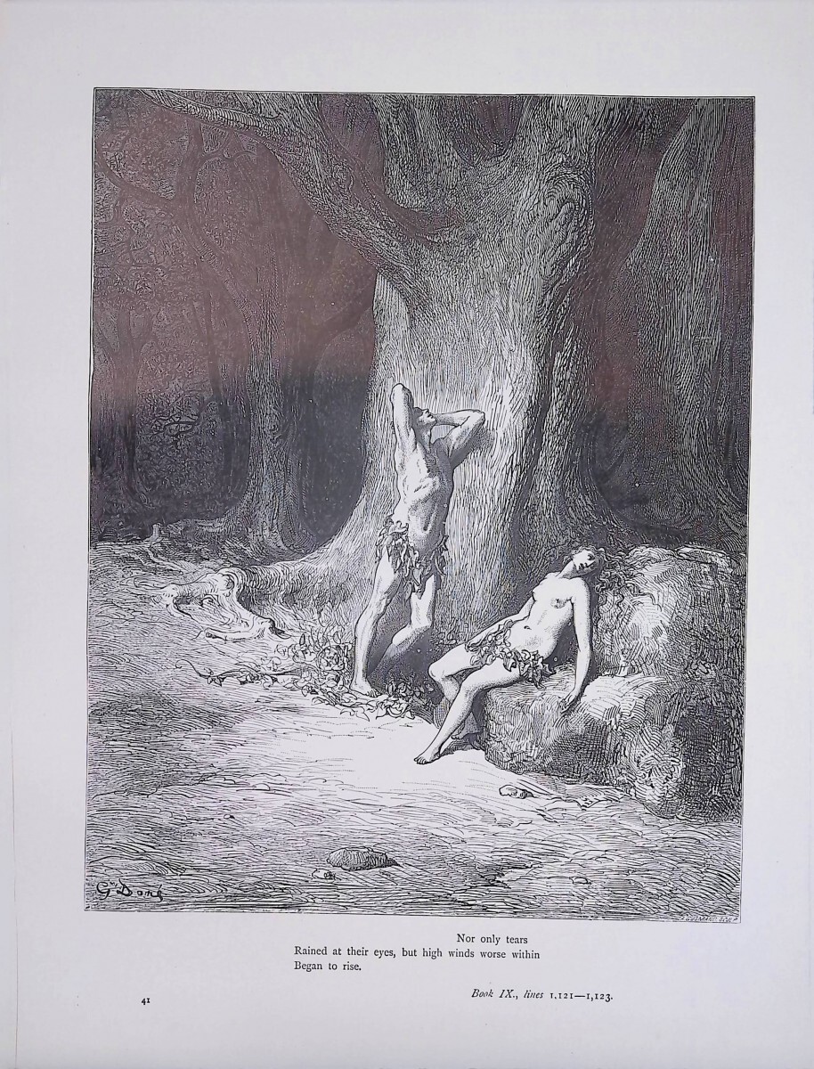 19世紀にNewYorkのCassell社から刊行されたミルトンのParadise Lost のドレので挿絵です。サイズは、24.5cmx32cmで、裏は白紙です、状態は、良く保存されています。紙は、しっかりとした厚手の上質紙で、良く保存されています。額はありません。Gustave Dore 、オリジナル