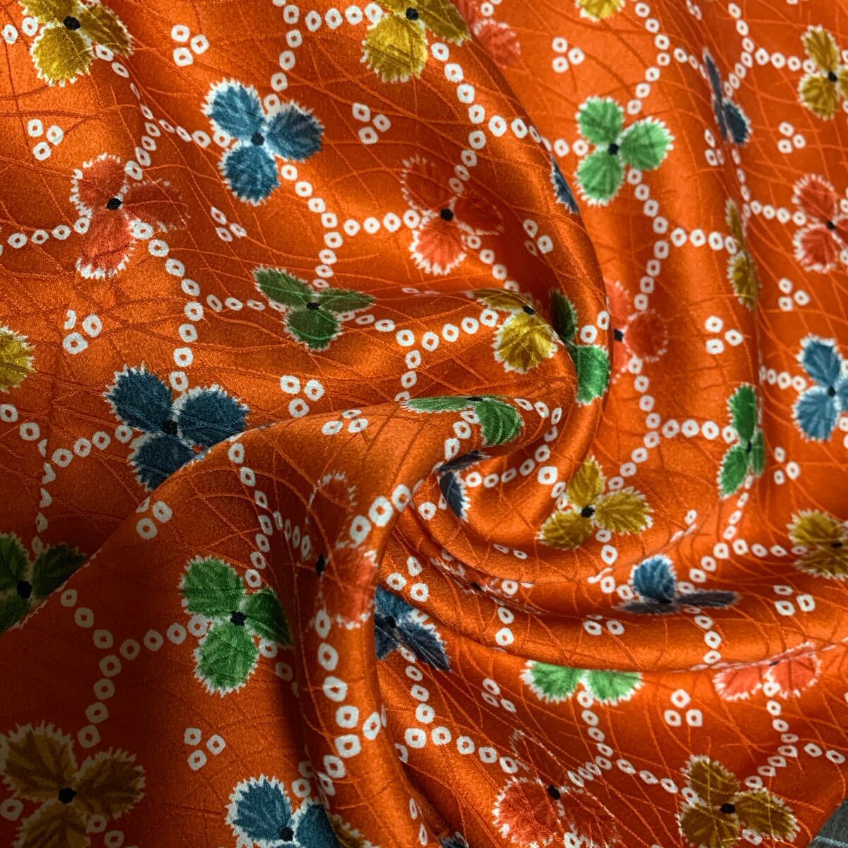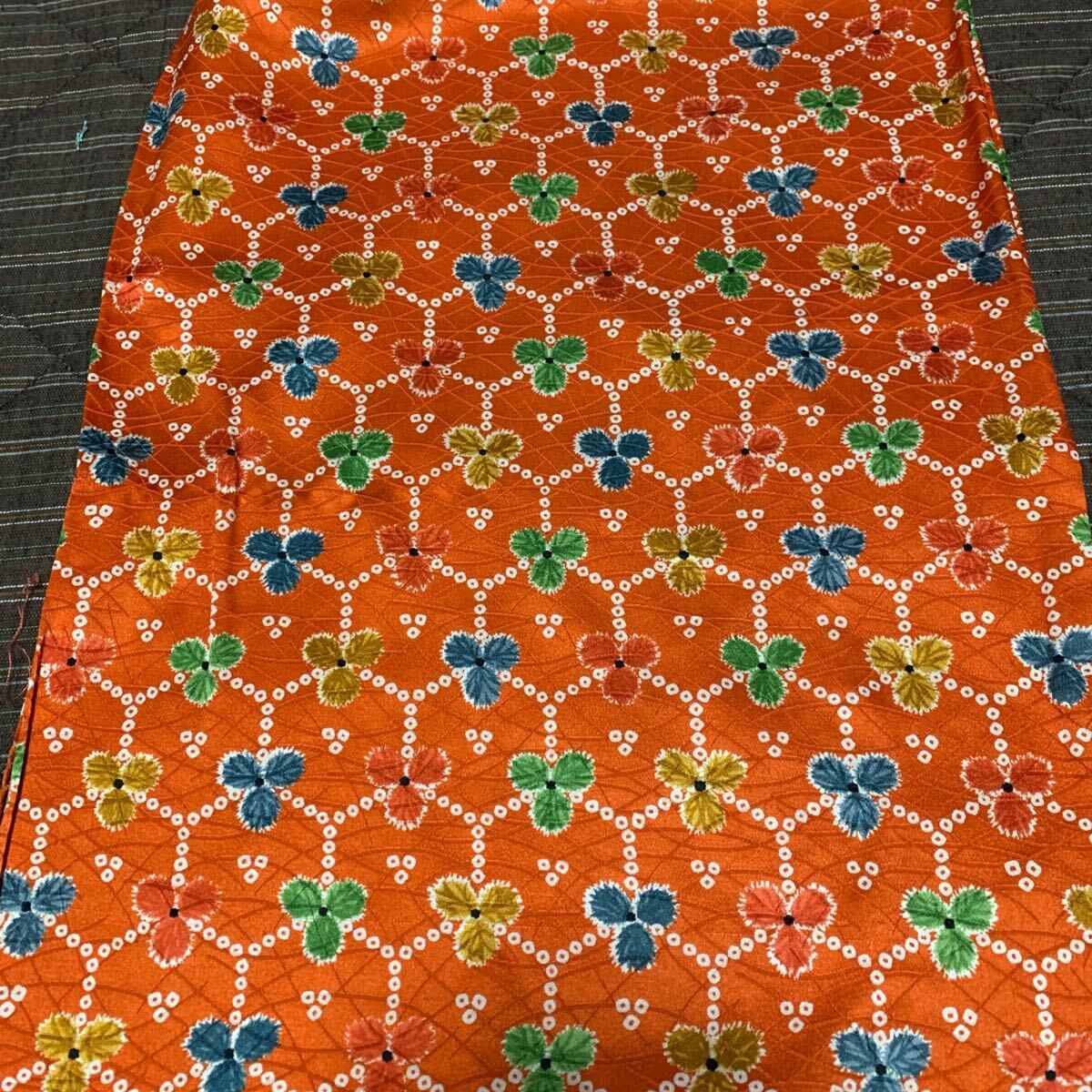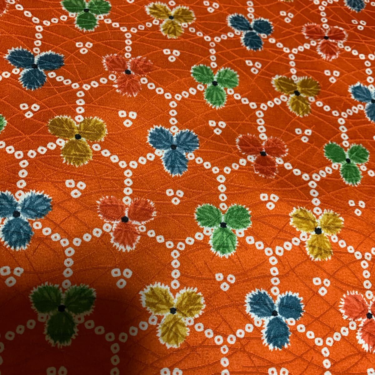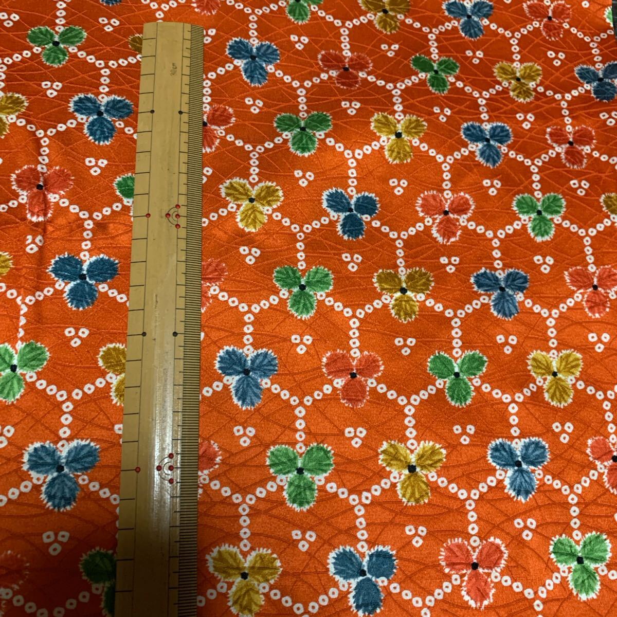 正絹 約35×102 オレンジ亀甲 カラフル花柄 絞り柄 赤青緑黄色白 和柄 大正ロマン かわいい