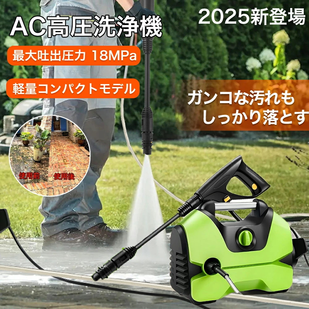 高圧洗浄機 水道直結 AC 1200W 軽量 コンパクト 最大許容圧力18MPa 掃除 パワフル洗浄 洗車 可変ノズル 高圧ホース10m+水道ホース1.8m