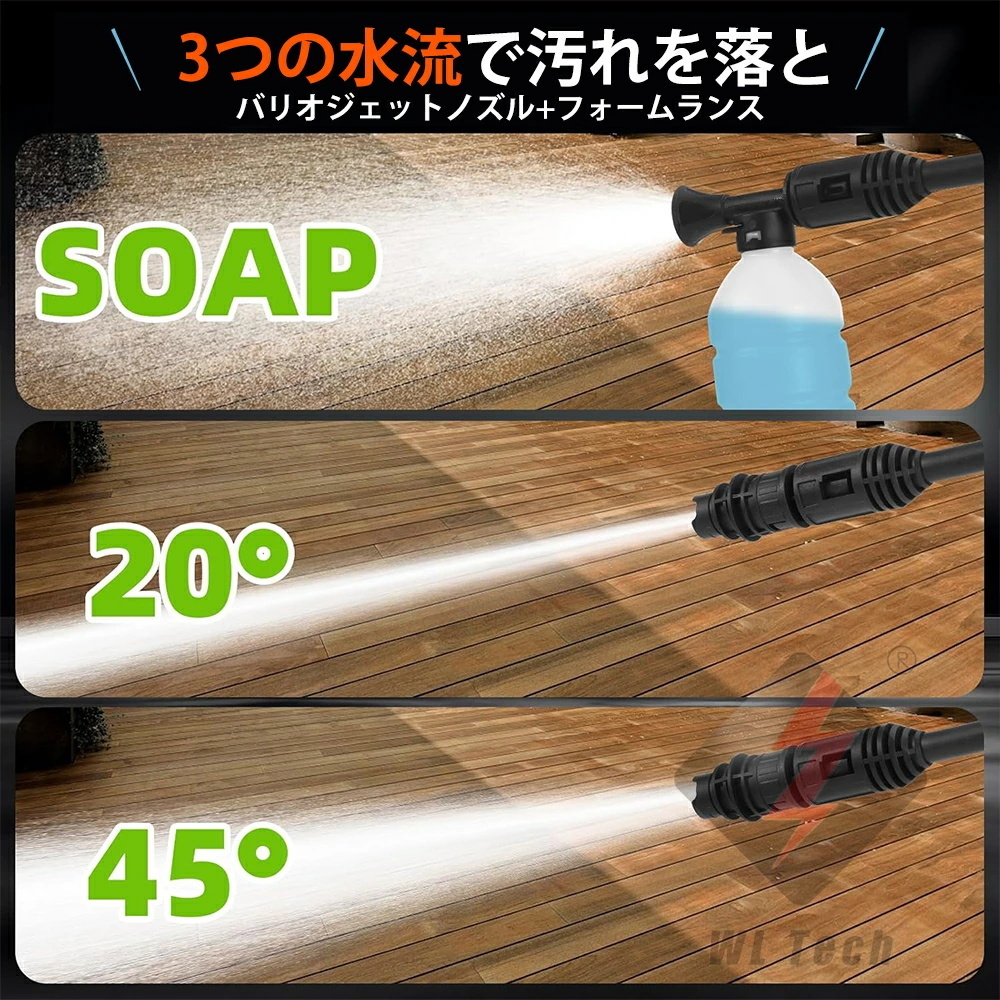 ターボランス:高速のスパイラル水流でこびりついた汚れまで落とす!