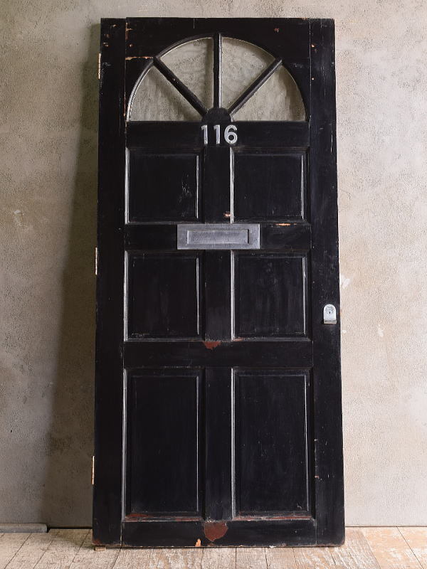 イギリスの蚤の市で見つけてきた古い、ガラス入り木製ドアです。。使い込まれた風合いがとても素敵です。クローム製ハウスナンバー、レタースロットが付いています。 立てかけてお部屋のインテリアにしたり お花屋さんや雑貨屋さん等 ショップディスプレイの アクセントにもオススメです。 桟、カマチが長年の使用により磨耗があります。取り付けてご使用の場合加工、調整が必要です。 ガラス部、焼成時の気泡シワ、傷(画像参照)がありますが、 ヒビ、チップはありません。ペイントの劣化は少しづつ進行します。 ご注文時期により現状とは多少状態が違っている場合もございますので、ご購入前にお問い合わせください 。 古いものとご理解ください。 発送時、一部金物を外します(3辺300cm以内にするため)←別梱包にて発送します到着後、取り付けてください。 縦框ゆがみ、材一部割れを考慮して価格に反映しています。 丁番側に若干反りが有ります。 商品状態は詳細画像にてご確認ください。