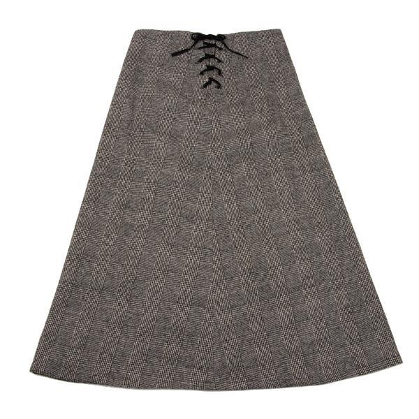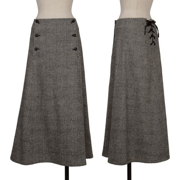 ワイズY's ブラッシュドウールグレンチェックセータースカート グレー1 |