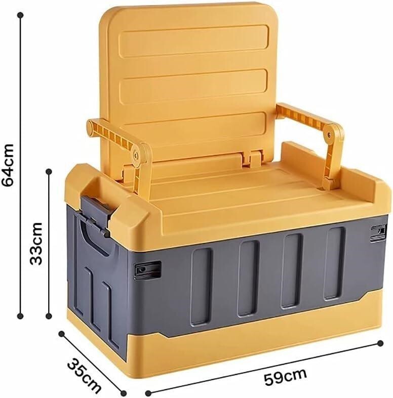 素材:PP サイズ:(椅子収納時)59*35*33cm/(椅子展開時)59*35*64cm 容量:58L 色:ブラック/ブルー/イエロー ★商品写真はできる限り実物の色に近づけるよう努めておりますがご使用のPCモニター設定や部屋の照明により多少、色の変化が感じられる場合がございます