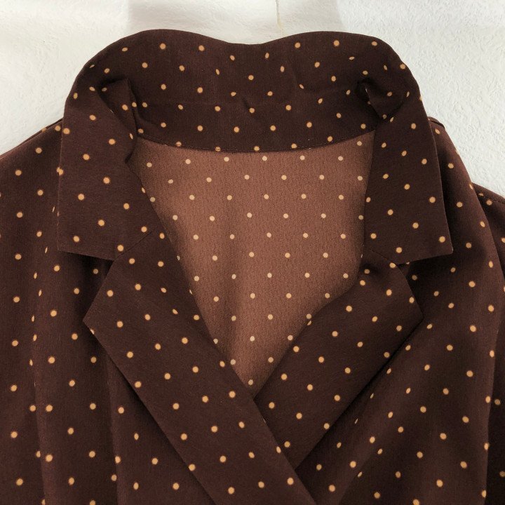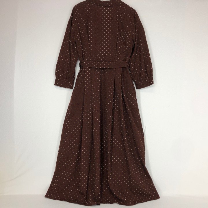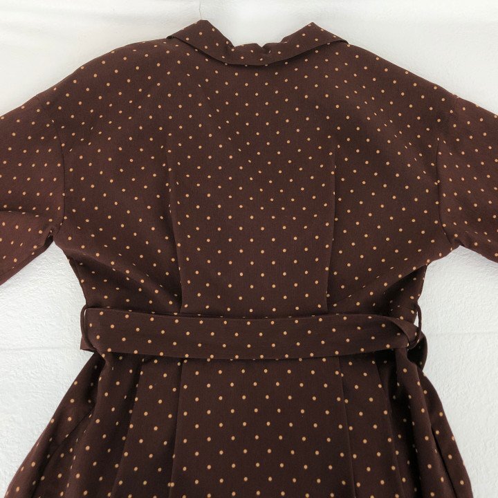 nano universe ナノユニバース 七分袖 ドット柄 オープンカラー ロングワンピース SIZE: 36 ブラウン LH632025040810 | |