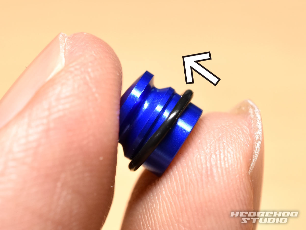 ゴムリングを写真矢印部にある溝まで移動させれば作業完了です。