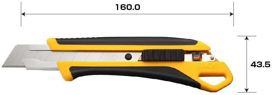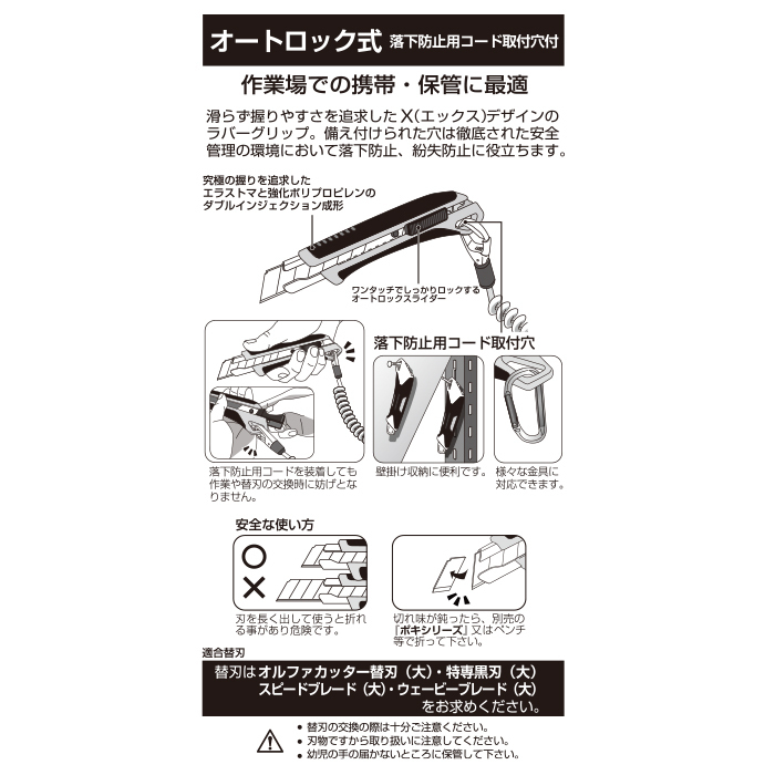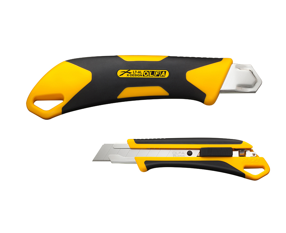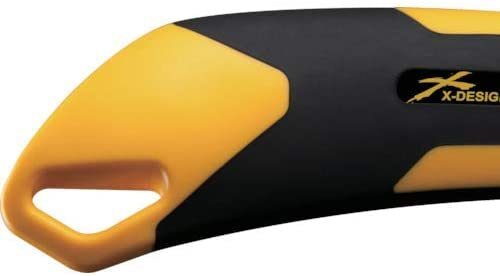 握ったときに、滑らず力のかけやすい形状を追求したX(エックス)デザイン・ハイパーシリーズの大型カッターナイフ。