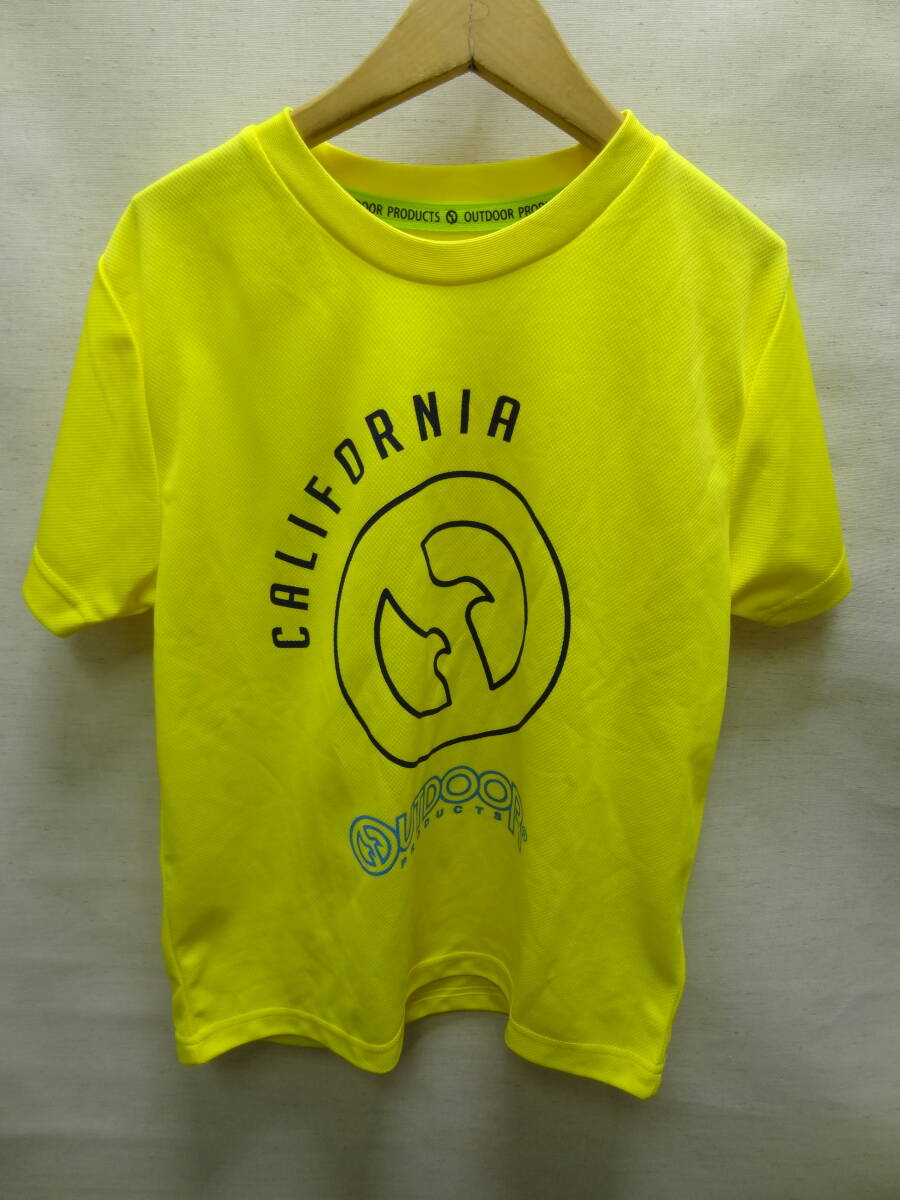 送料無料 新品 アウトドアプロダクツ OUTDOOR PRODUCTS 子供服キッズ男&女の子 BIGロゴ ポリエステル100% 半袖 黄色 メッシュTシャツ 150