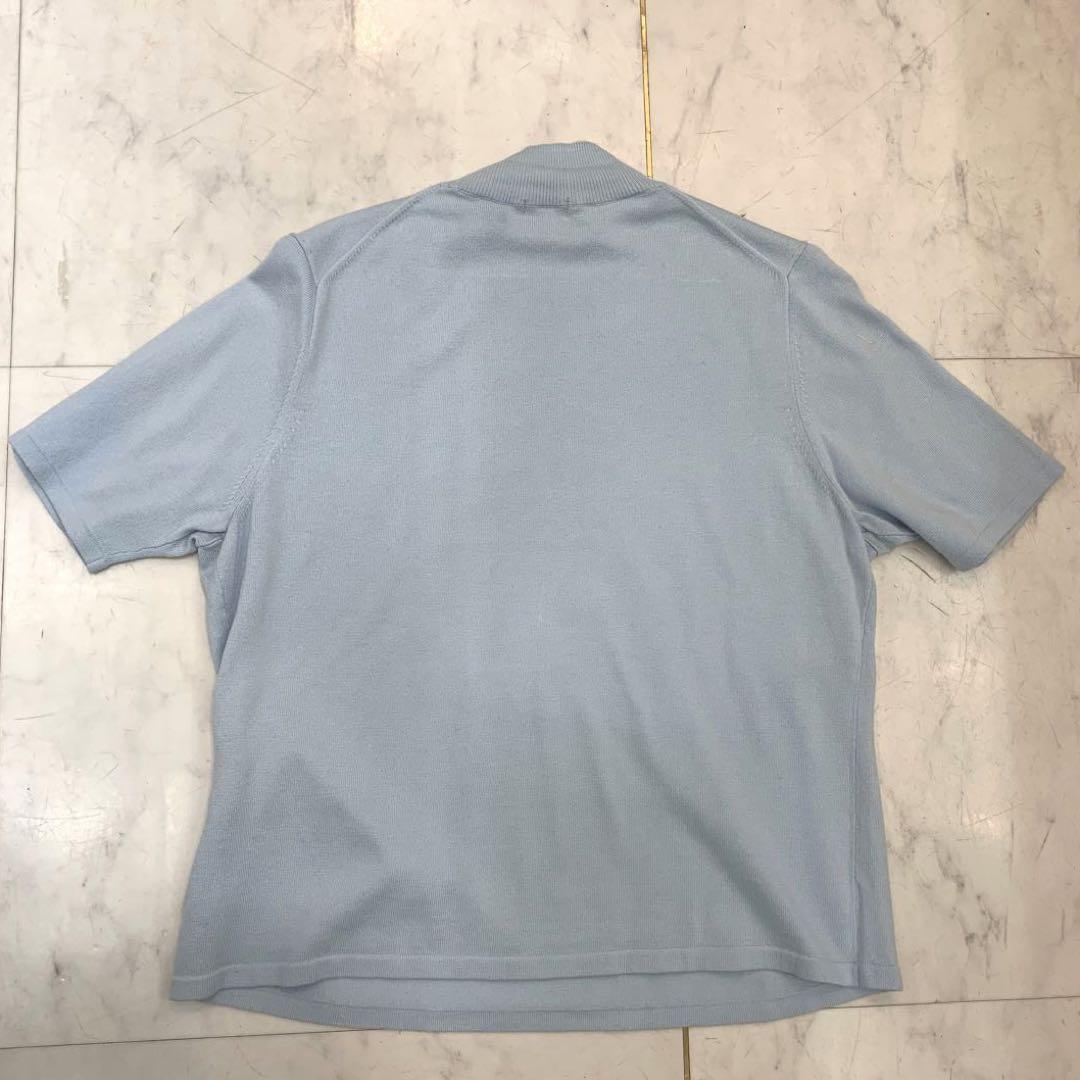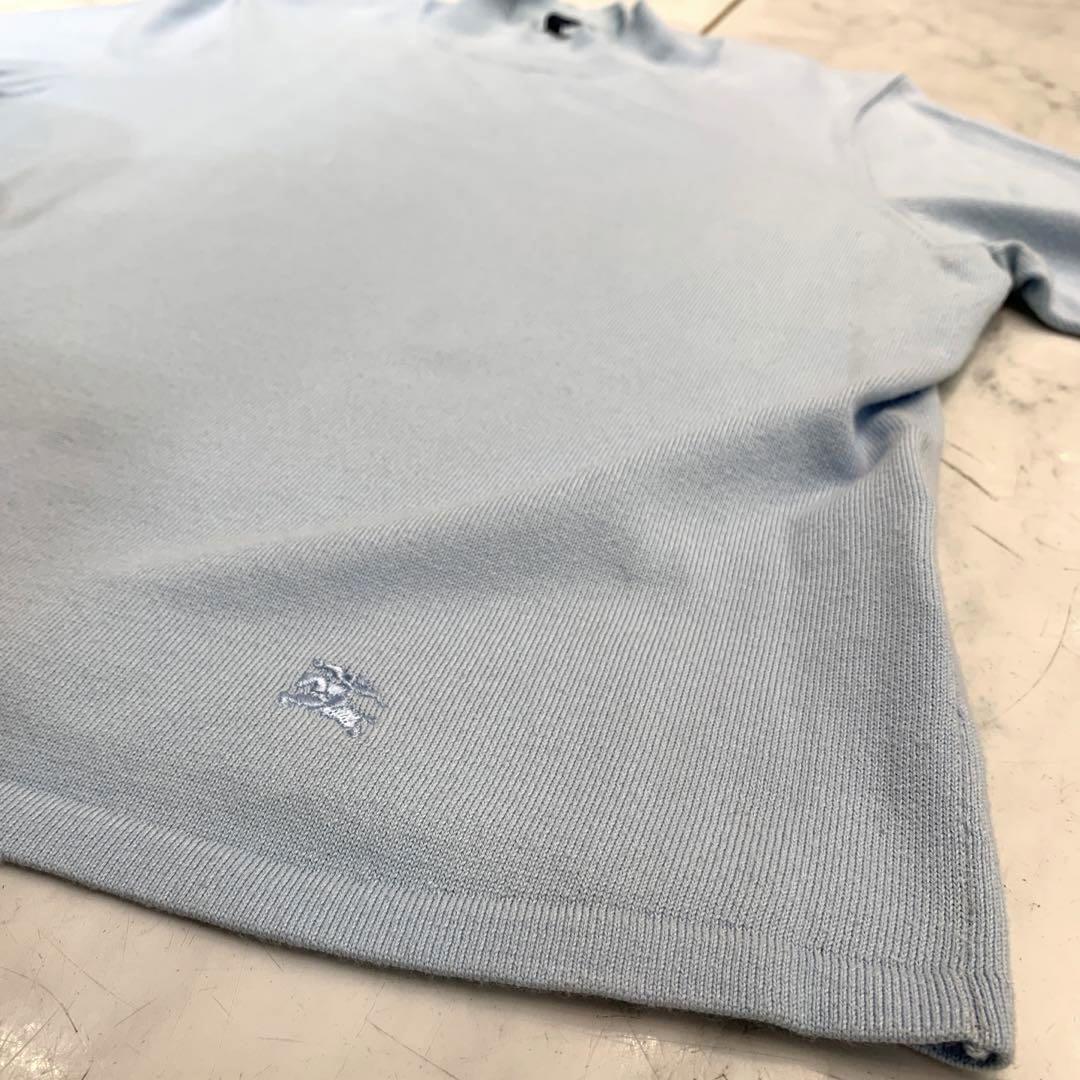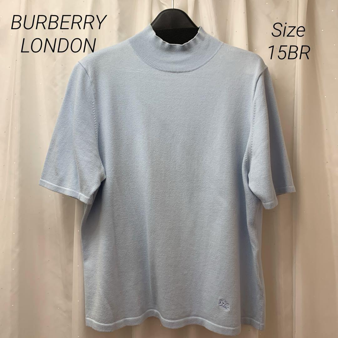 BURBERRY LONDON バーバリーロンドン 半袖 ニットカットソー ハイネック コットン ライトブルー 水色 サイズ15BR XL相当 ロゴ刺繍入り レディース 三陽商会