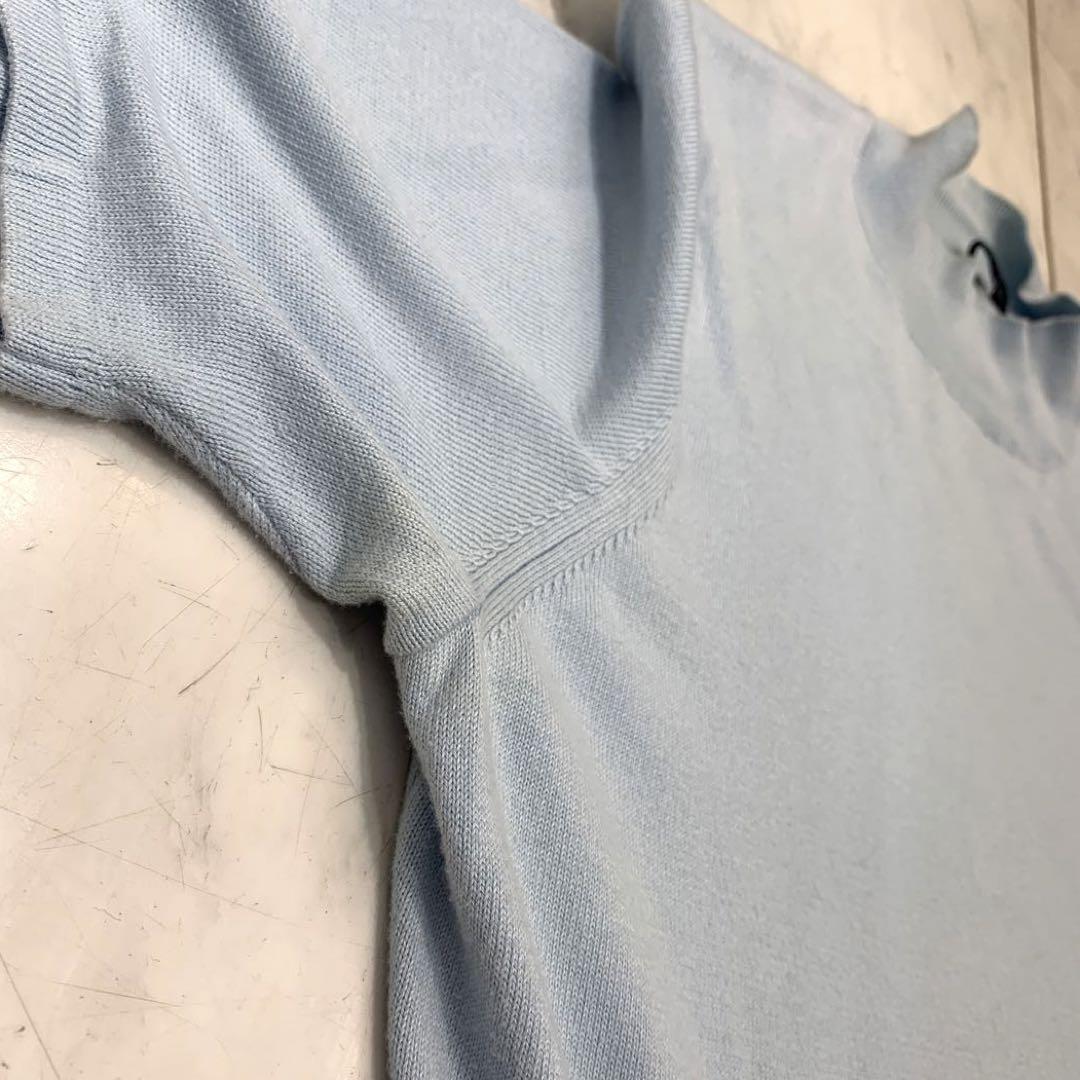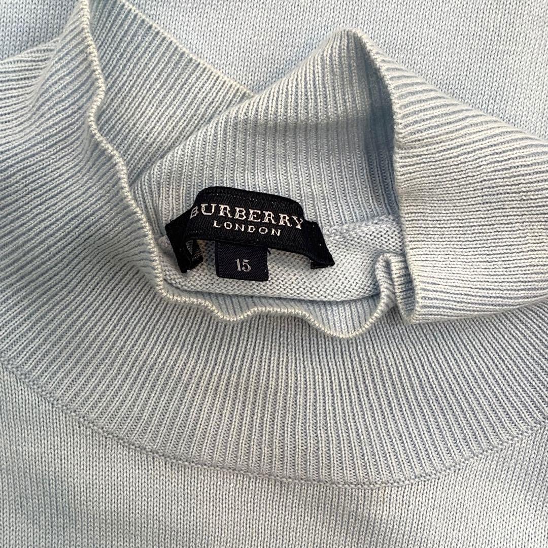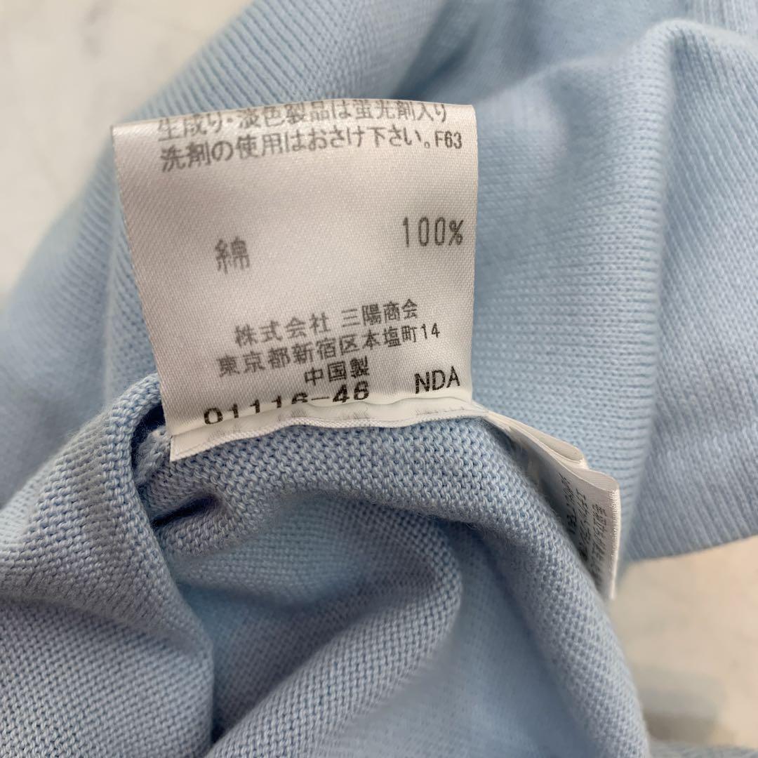 BURBERRY LONDON バーバリーロンドン 半袖 ニットカットソー ハイネック コットン ライトブルー 水色 サイズ15BR XL相当 ロゴ刺繍入り レディース 三陽商会