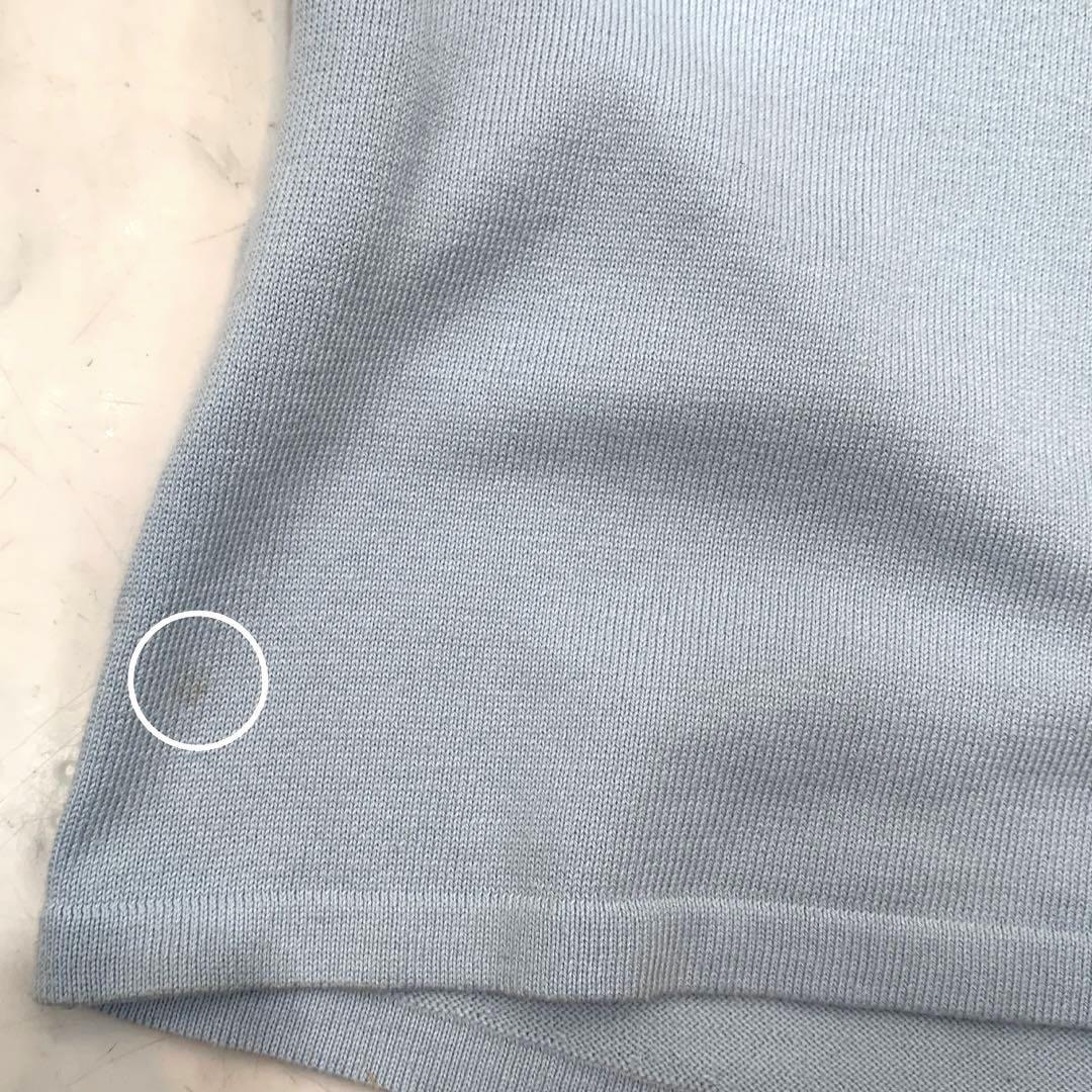 微細なシミ、薄い脇シミ、素材特有の僅かな毛羽立ちがありますが、大きく目立つほどではなく、ぱっと見は比較的きれいな印象です☆画像ご参照ください。