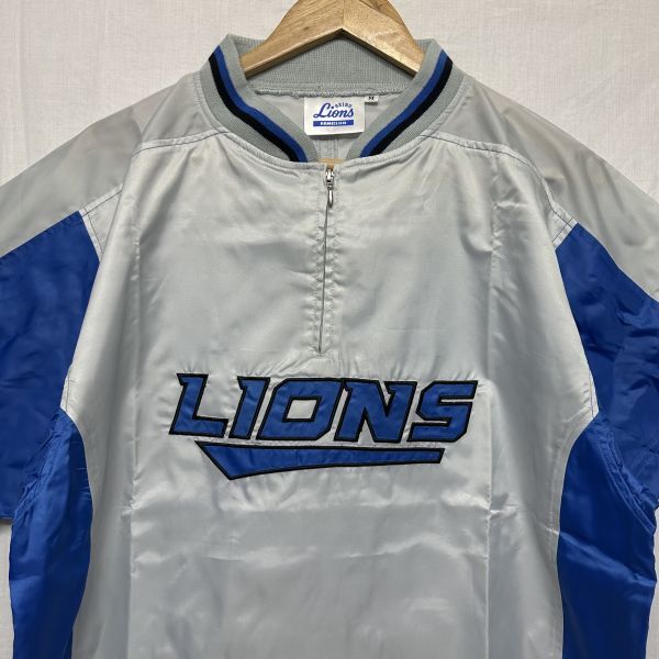 埼玉 西武 ライオンズ ファンクラブ オフィシャル ショート スリーブ 半袖 ナイロン ハーフ ジップ ジャケット 野球 M グレー b21365