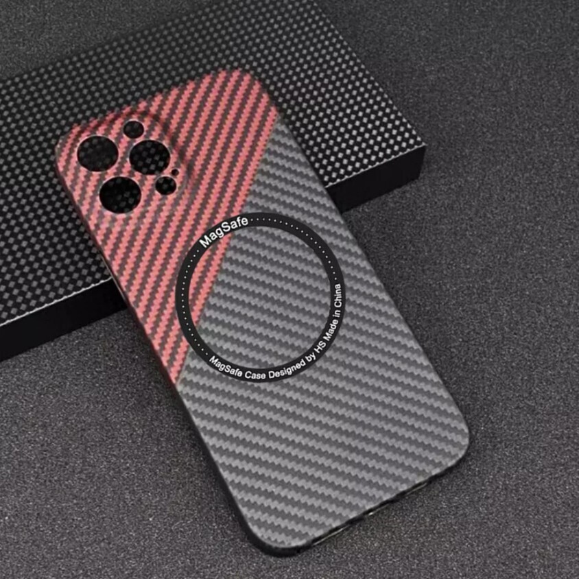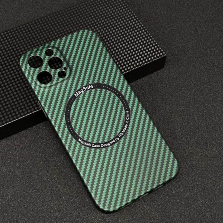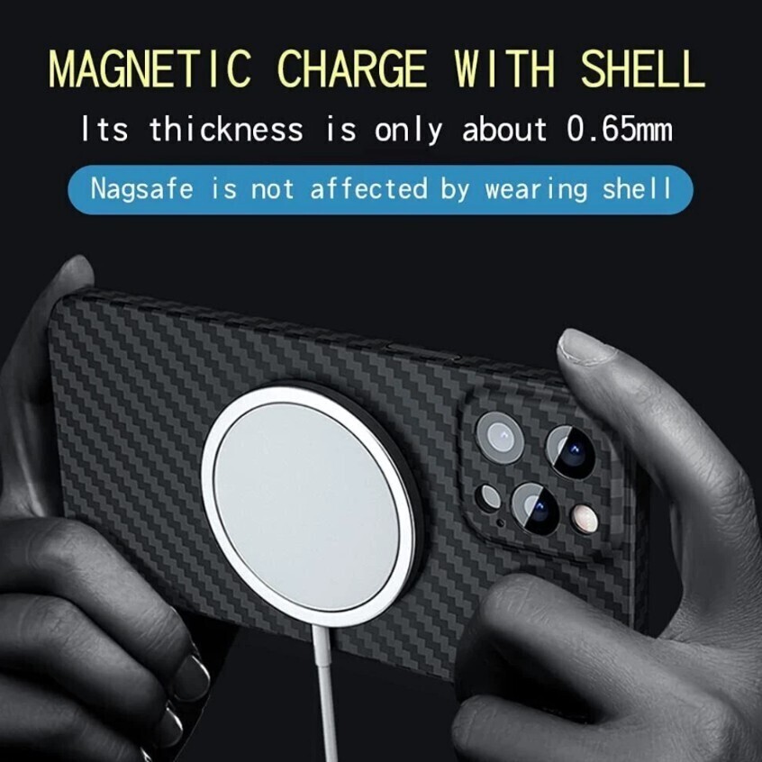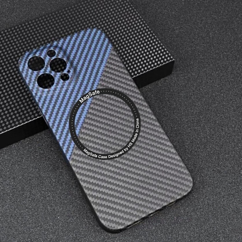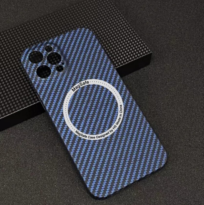 MagSafeアクセサリーに対応。ファッショナブルなカーボンファイバーの質感とコーティングによるつや消し加工で、より快適な手触り。0.8mmの超薄型デザインで、スマートな外観。