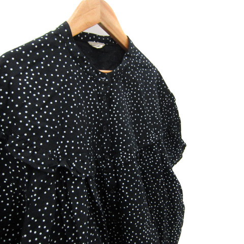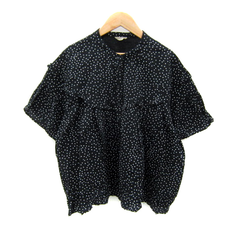 サマンサモスモス SM2 ブラウス シャツ 半袖 バンドカラー ドット柄 水玉柄 オーバーサイズ F 黒 ブラック 白 ホワイト レディース