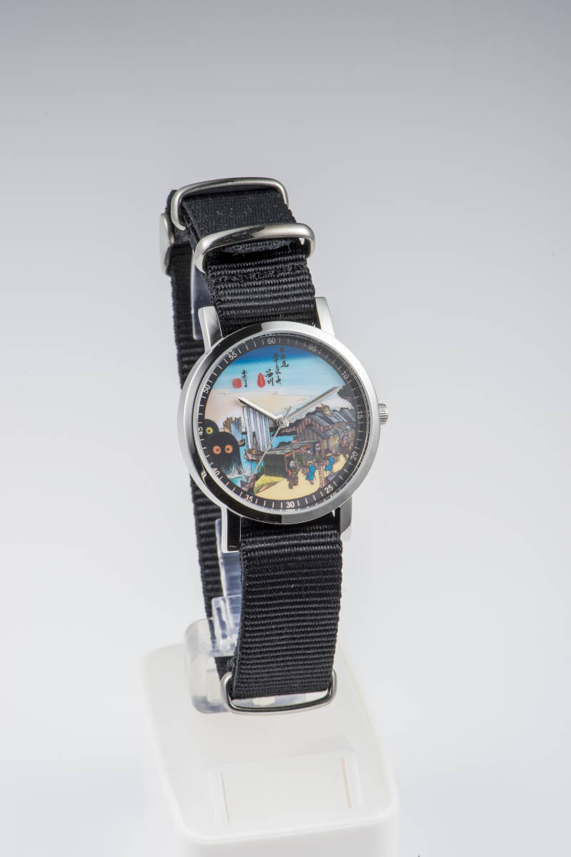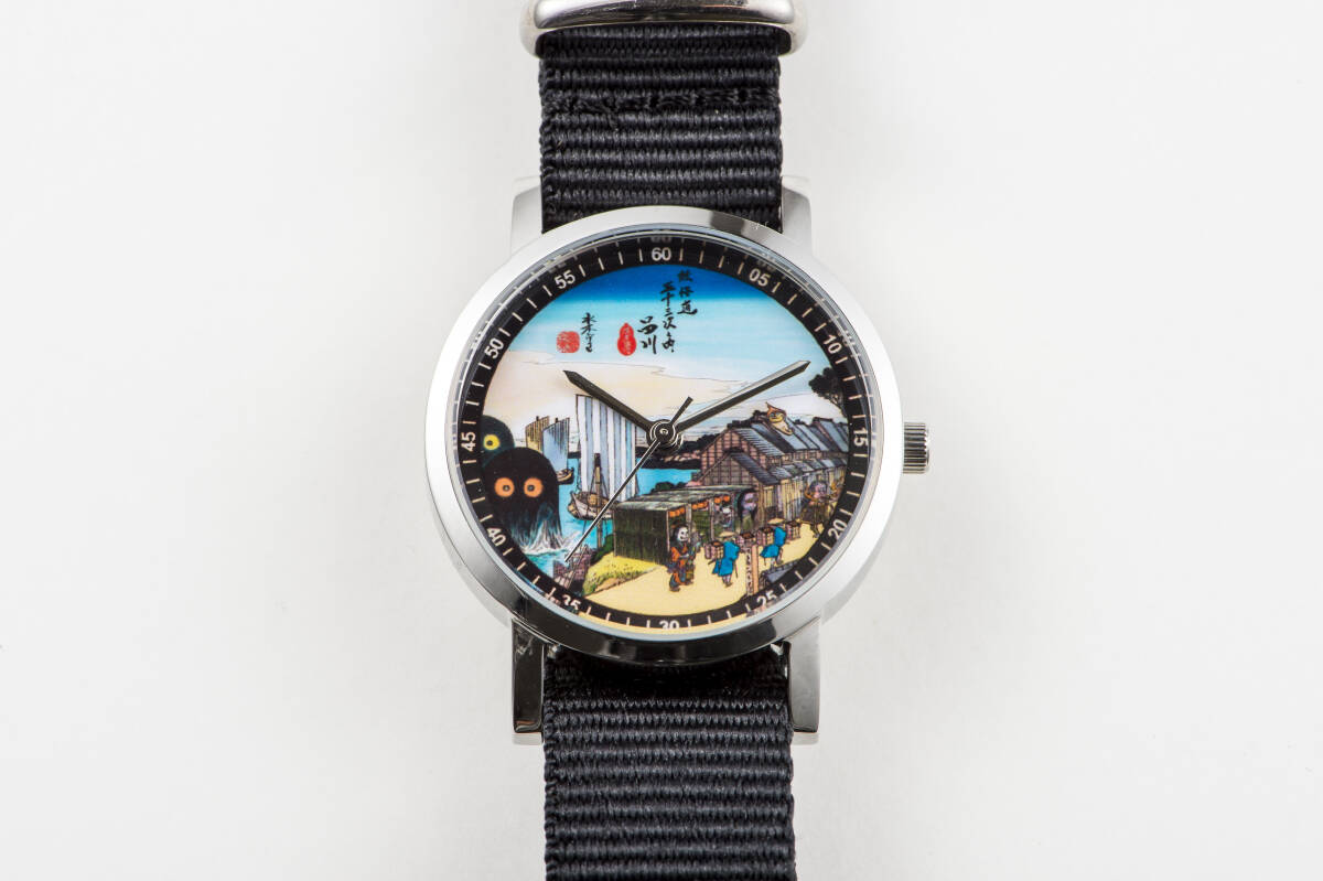 | 「妖怪道五十三次(ヨウカイドウゴジュウサンツギ)」は東海道五十三次(歌川広重-作)の絵の中に妖怪たちが旅をしている腕時計です。文字盤は、水木しげる先生が描いた妖怪道五十三次の中から選ばれた妖怪たちが旅をしているデザインです。 |