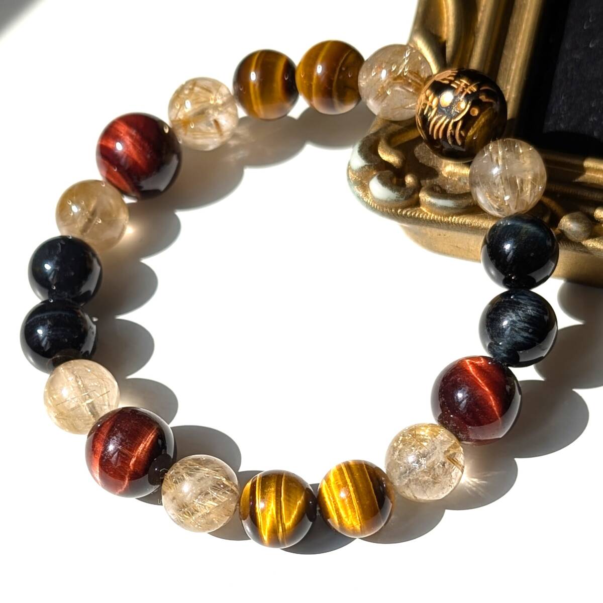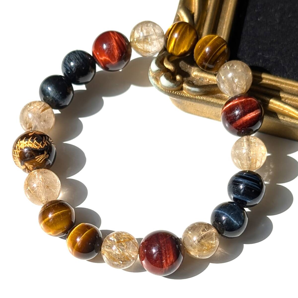 タイチンルチル 五本爪皇帝龍 タイガーアイ レッドタイガーアイ ブルータイガーアイ 数珠 ブレスレット 金運 お守り効果 ギフト 贈り物