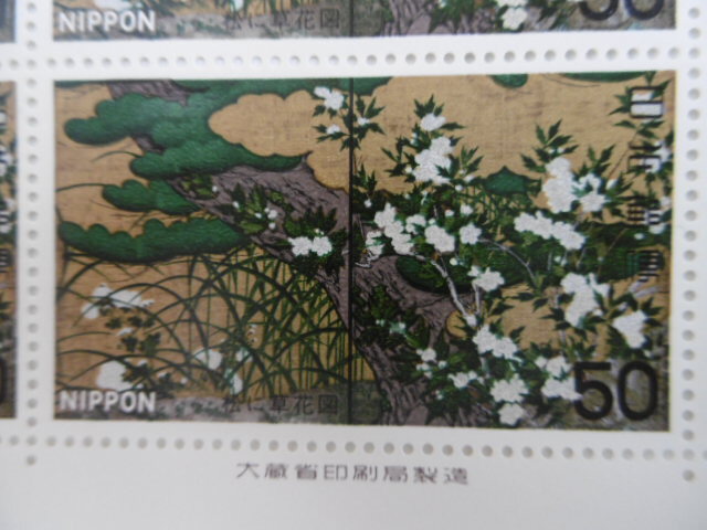未使用 3枚/3シート 国宝シリーズ 記念切手 第2集 唐招提寺金堂/第6集 松に草花図/第7集 俵屋宗達 澪標図 50円切手×60枚