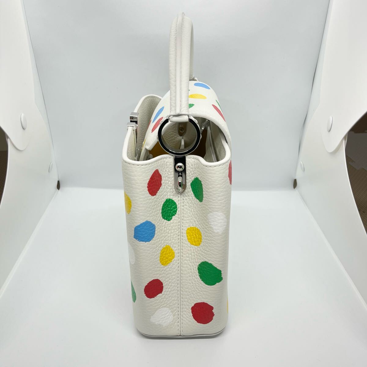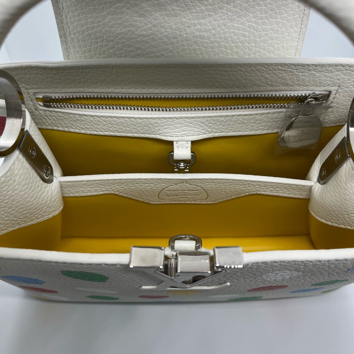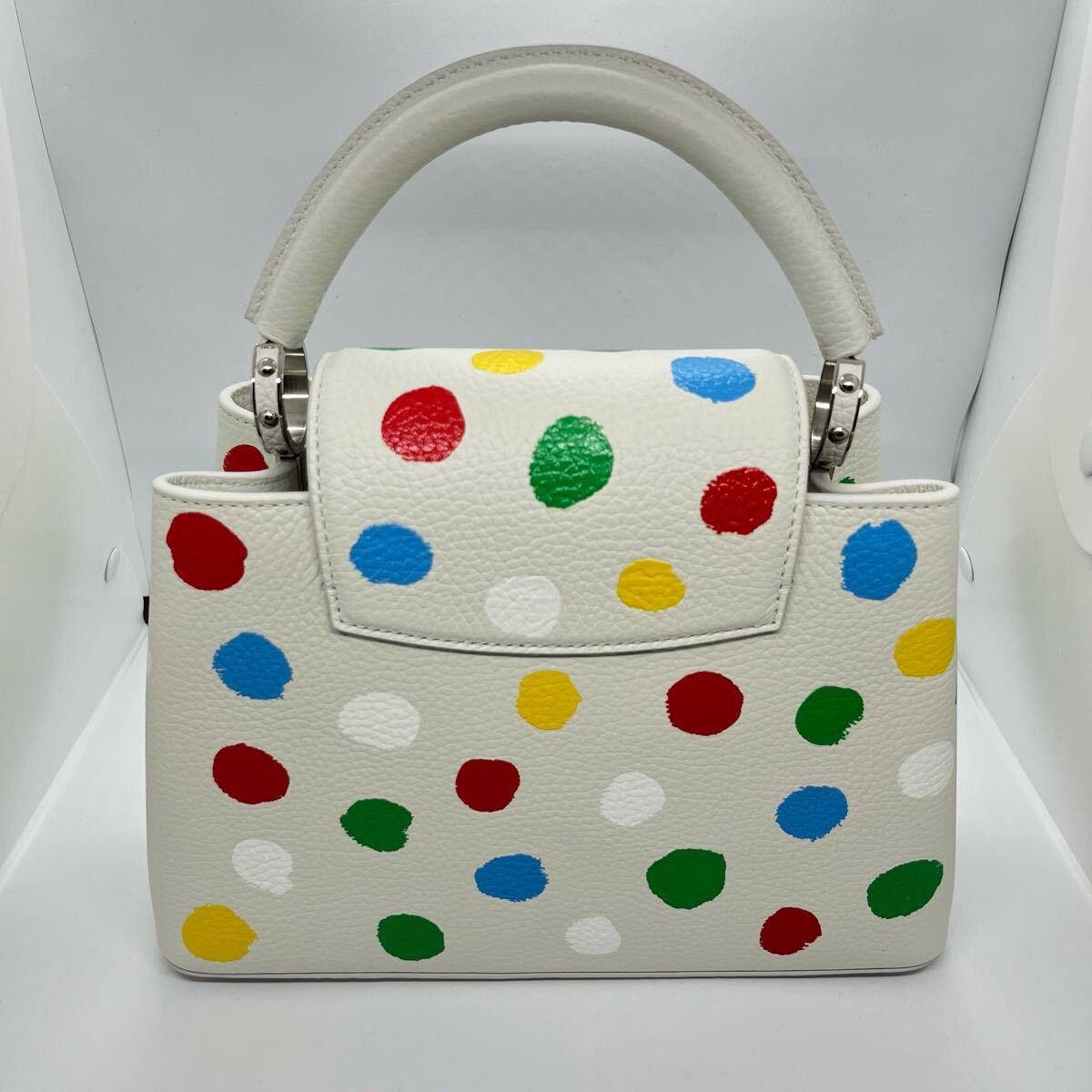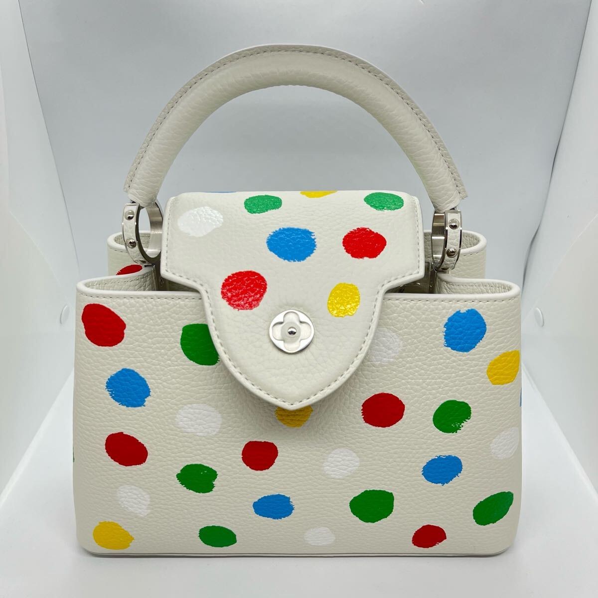 未使用・保護シール付き、ルイ・ヴィトンと草間彌生さんのコラボ商品カプシーヌBB ハンドバッグです。