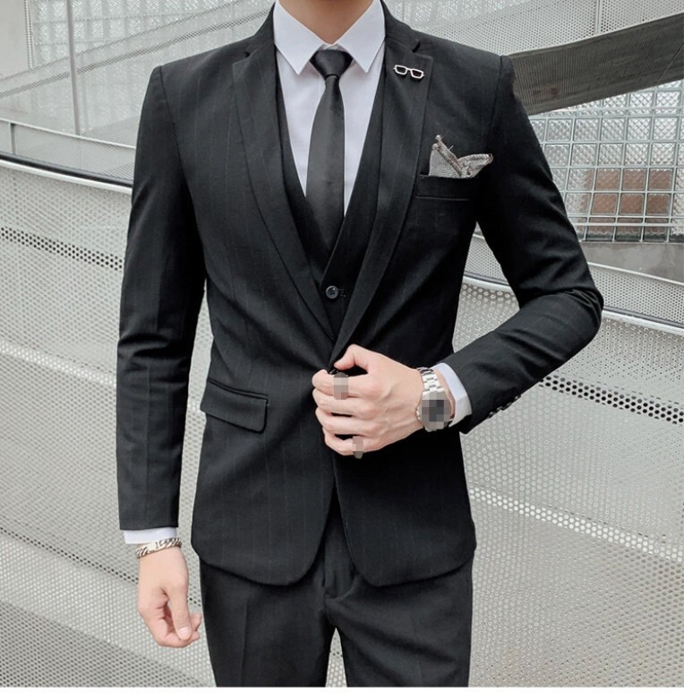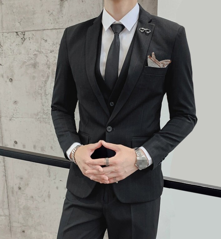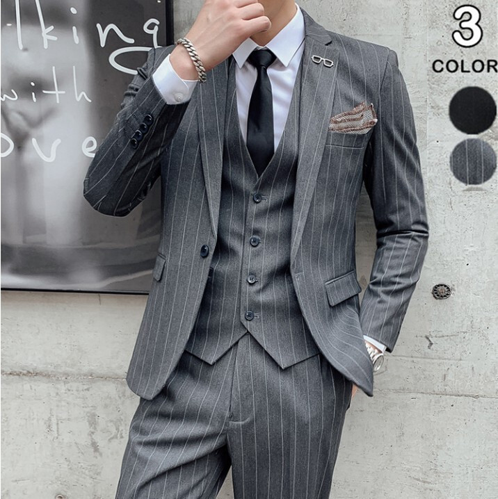 メンズスーツ ビジネススーツ スーツセットアップ 3点セット フォーマルスーツ ベスト テーラードジャケット パンツ M~4XL選択