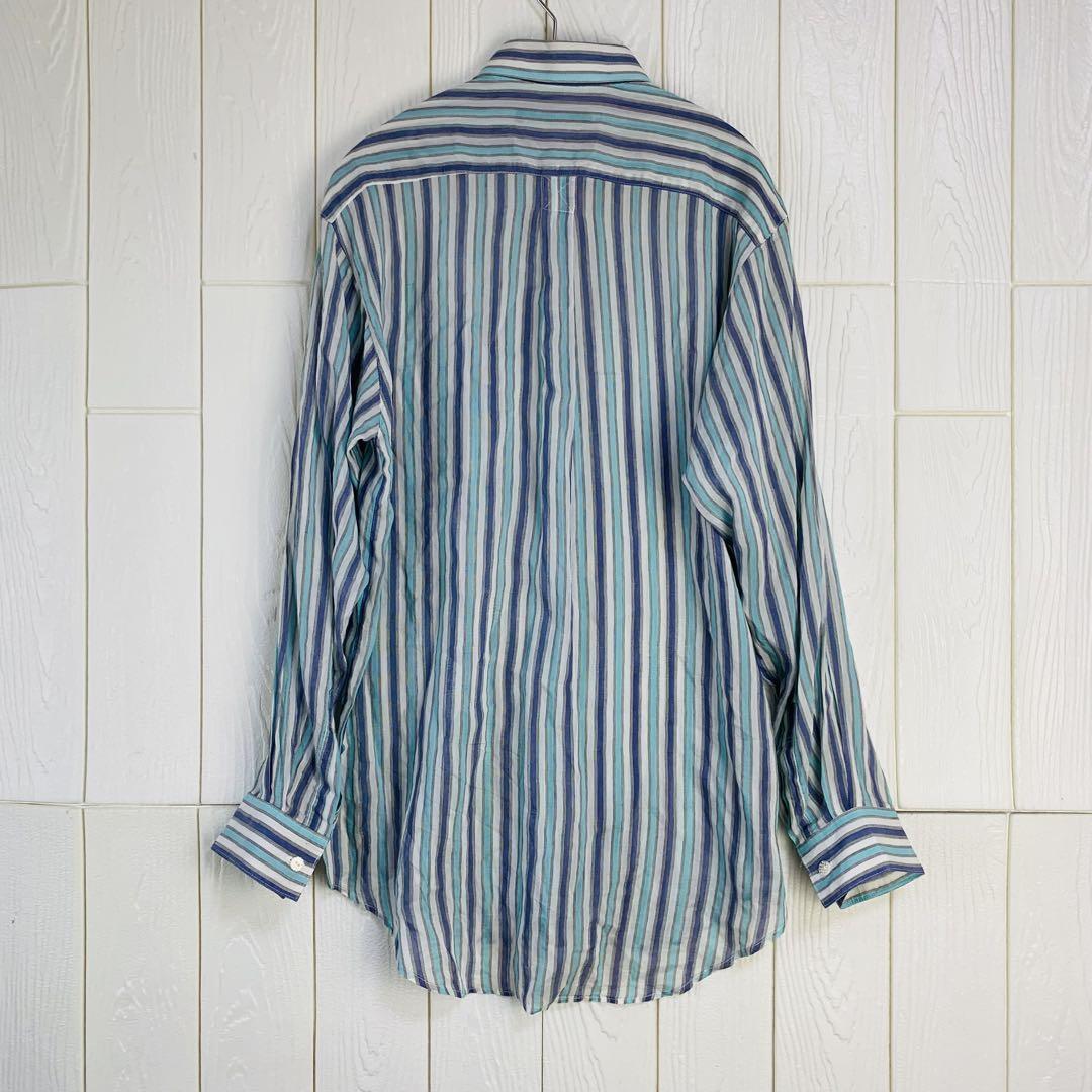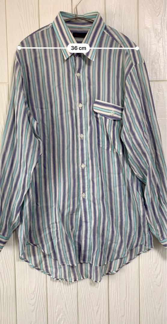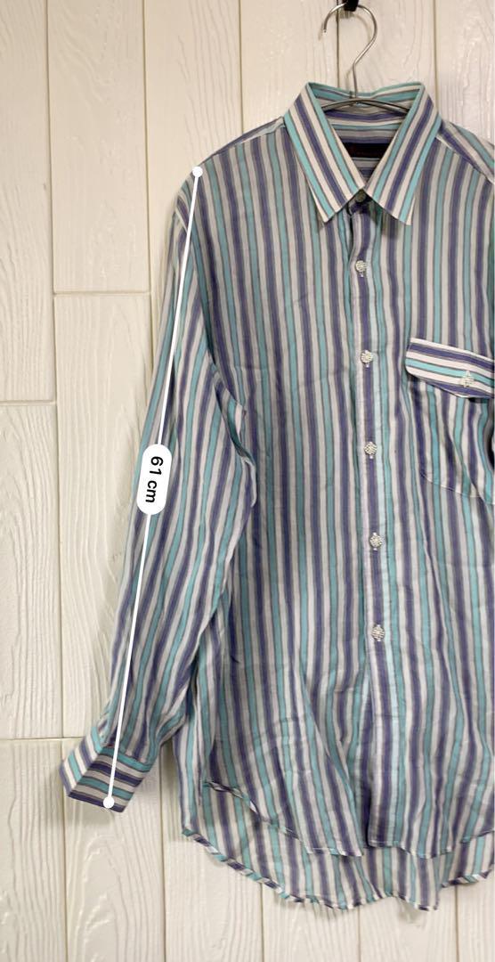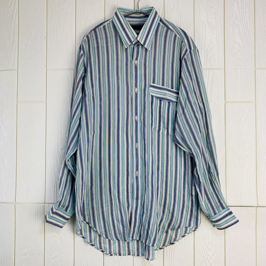 ストライプデザインの長袖シャツ、胸ポケット付きでスタイリッシュ。