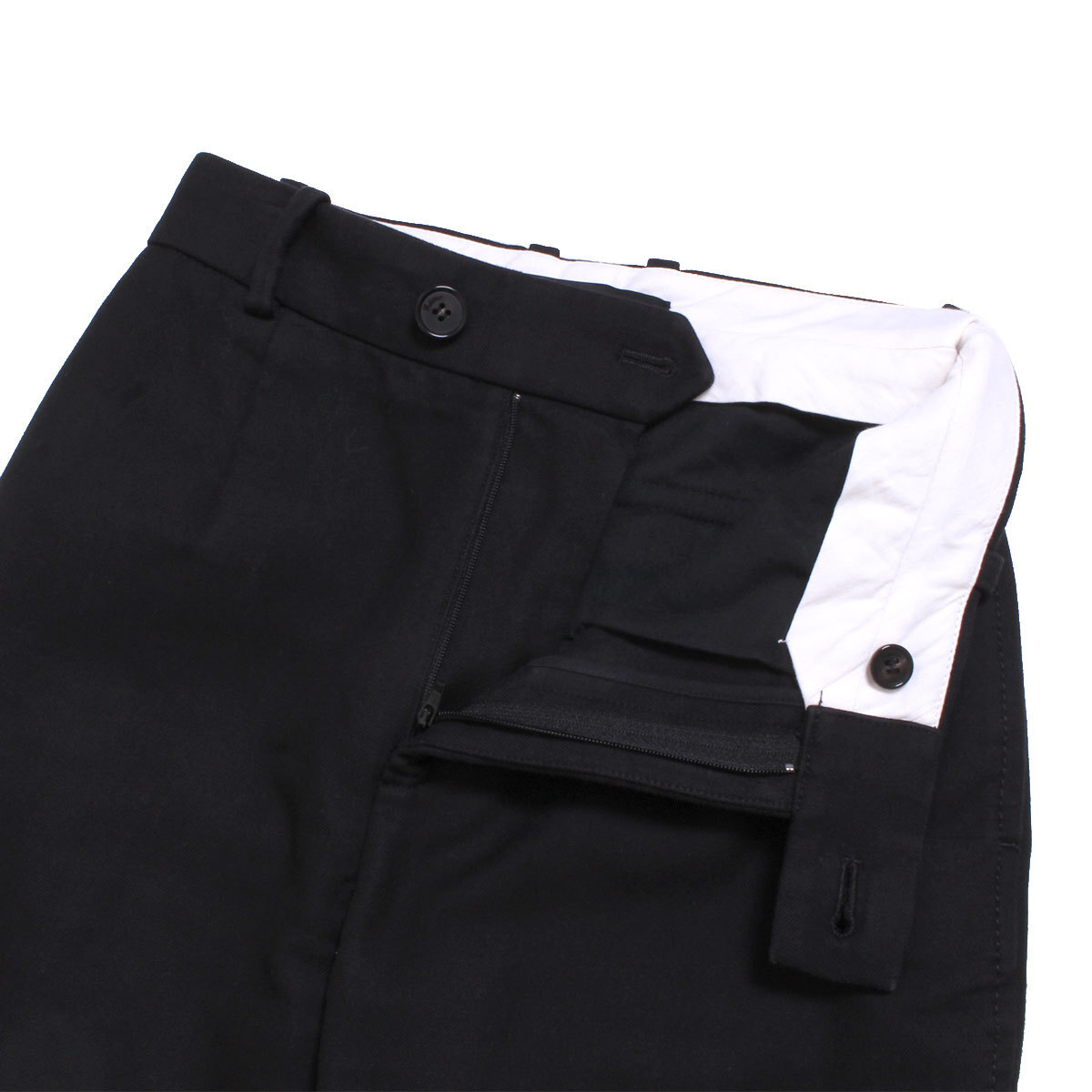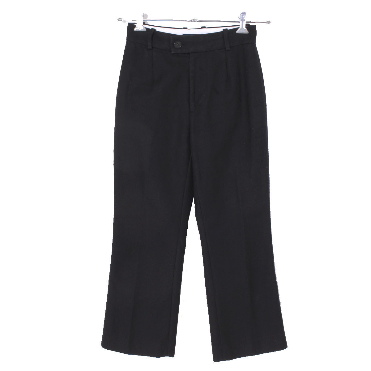 ■表示サイズ=34 ■ウエスト.68cm※ウエストボタン、ジップ仕様 ■総丈.88cm ■股下.62cm ■股上.27cm ■裾幅.22.5cm ■ワタリ幅、脚の付け根片側.27.5cm 220416-43 |