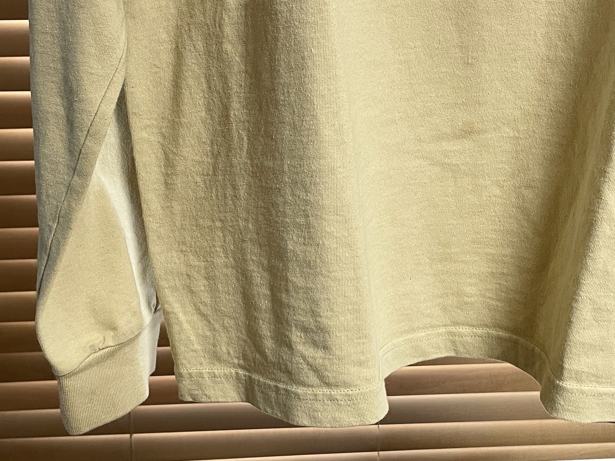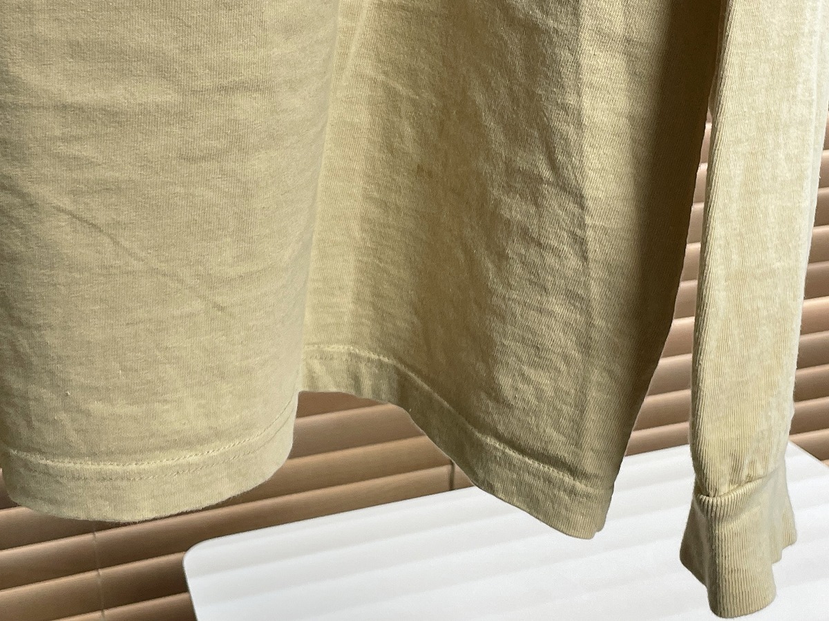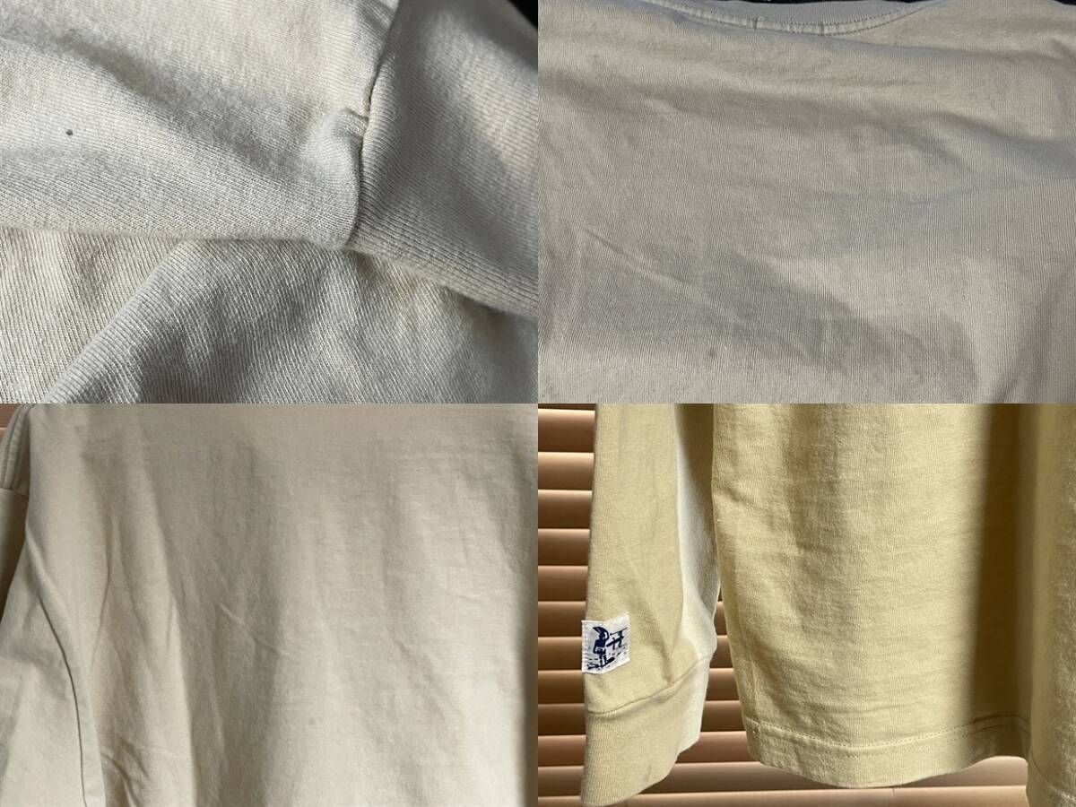 首まわりと両袖先のリブ部分に若干のヨレと汚れが見られます。